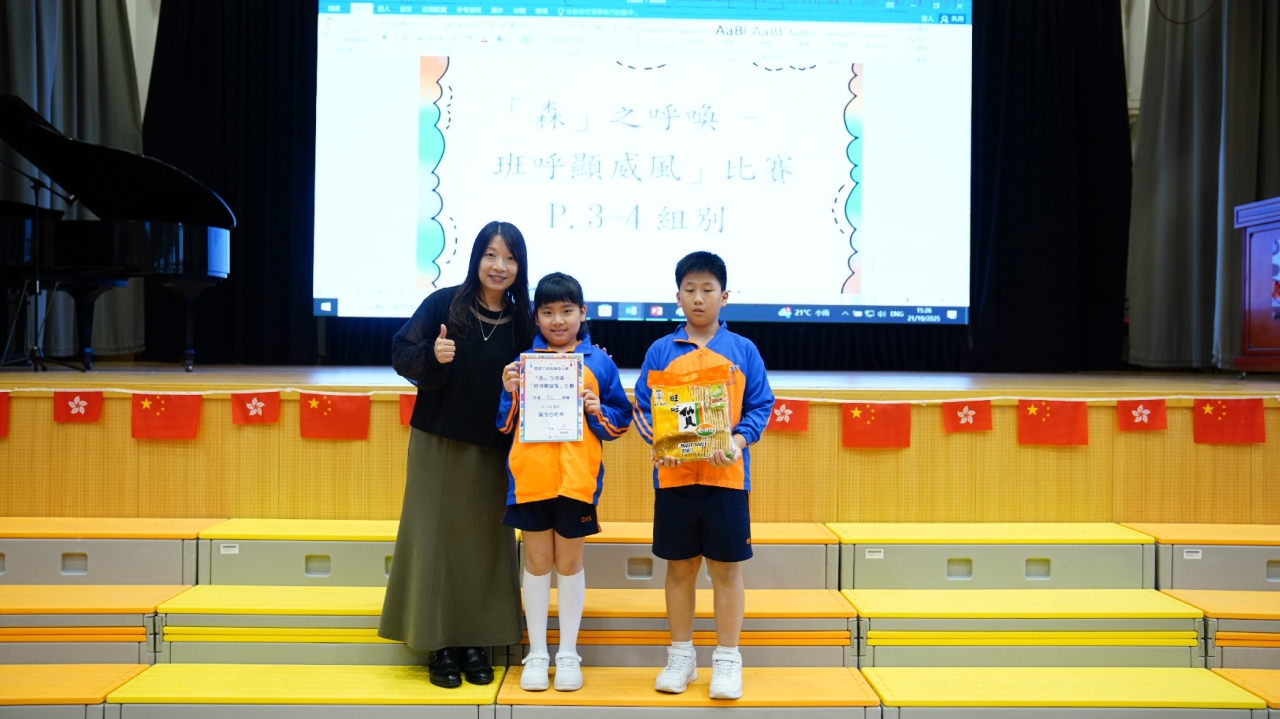 為了提升學生的團隊合作精神,培養他們對班級的歸屬感,本校於10月尾一連三天舉行了「『森』之呼喚-班呼顯威風」比賽。各班在班主任的帶領之下,由設計各班獨特的班呼、以至展現、演繹班呼,各有特色,精彩絕倫,表現出色。期望各班能在這次班呼比賽之後,延續那份拼搏精神,繼續努力,實踐共同的目標。