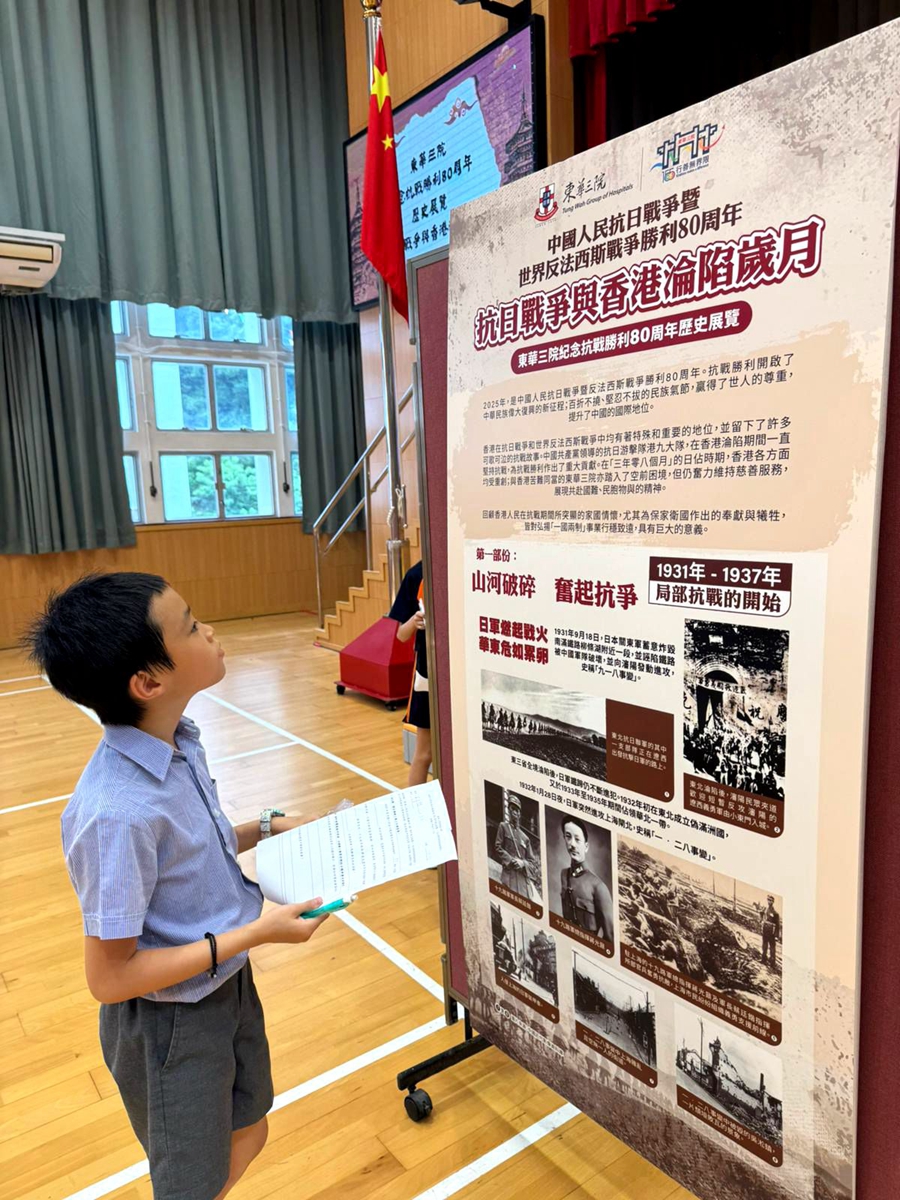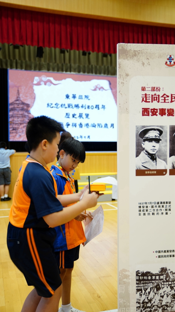 2025年是中國人民抗日戰爭暨世界反法西斯戰爭勝利80周年。由9月17日開始,一至六年級同學分年級參觀「中華人民抗日戰爭勝利80周年歷史展覽—抗日戰爭與香港淪陷歲月」,從中加深對抗日戰爭的認識,齊齊成為歷史小專家。自由和平實在得來不易,我們要銘記歷史,珍惜和平,開創未來﹗