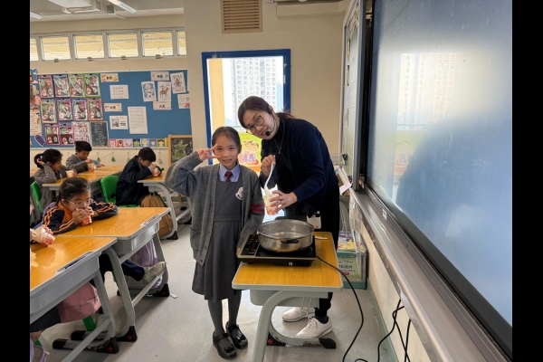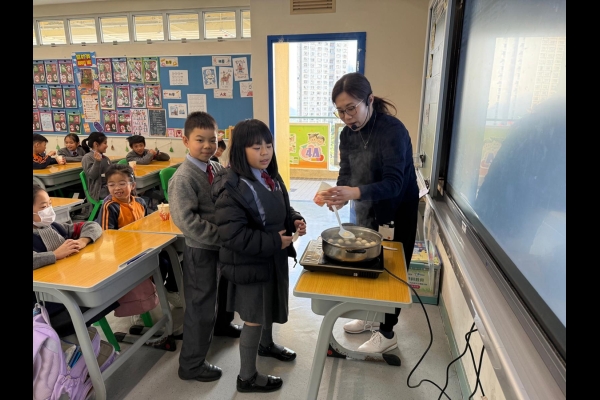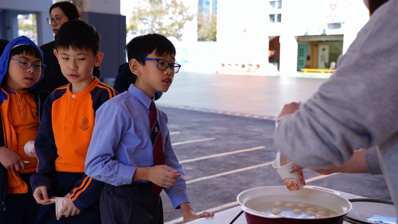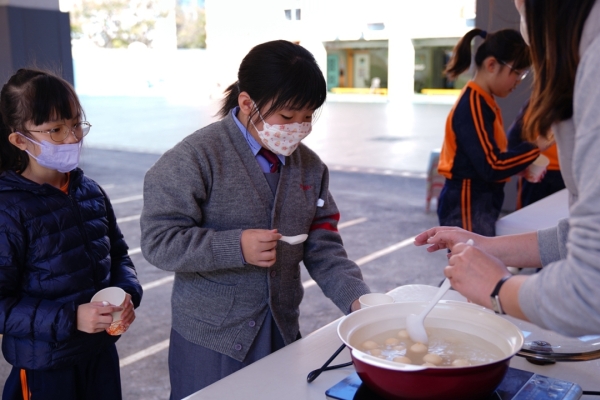 四年級學生於專題研習課認識中國傳統小吃—湯圓。他們不僅品嚐到軟糯香甜的湯丸,更從熱氣蒸騰中感受到團圓溫暖的中華魅力。