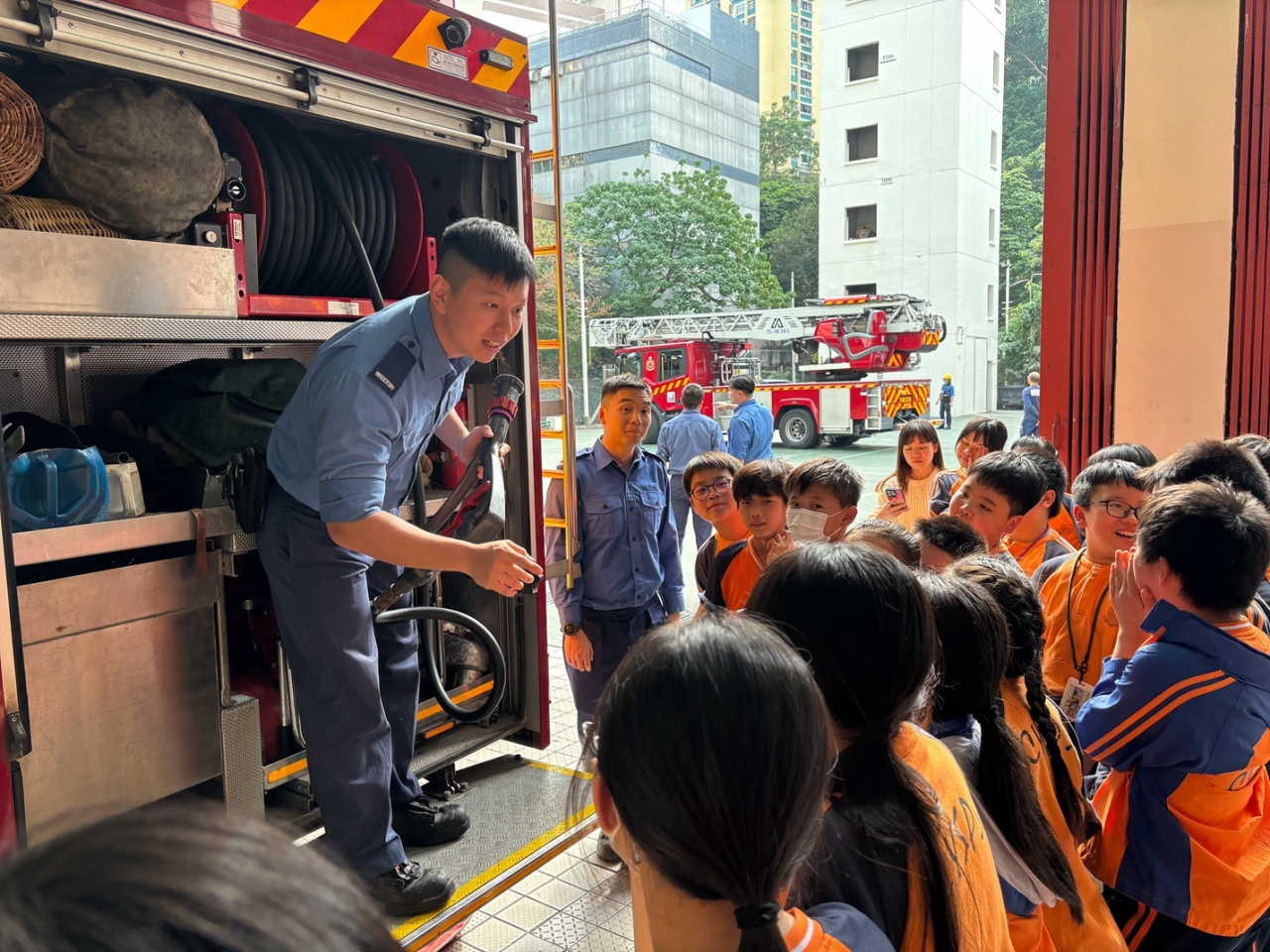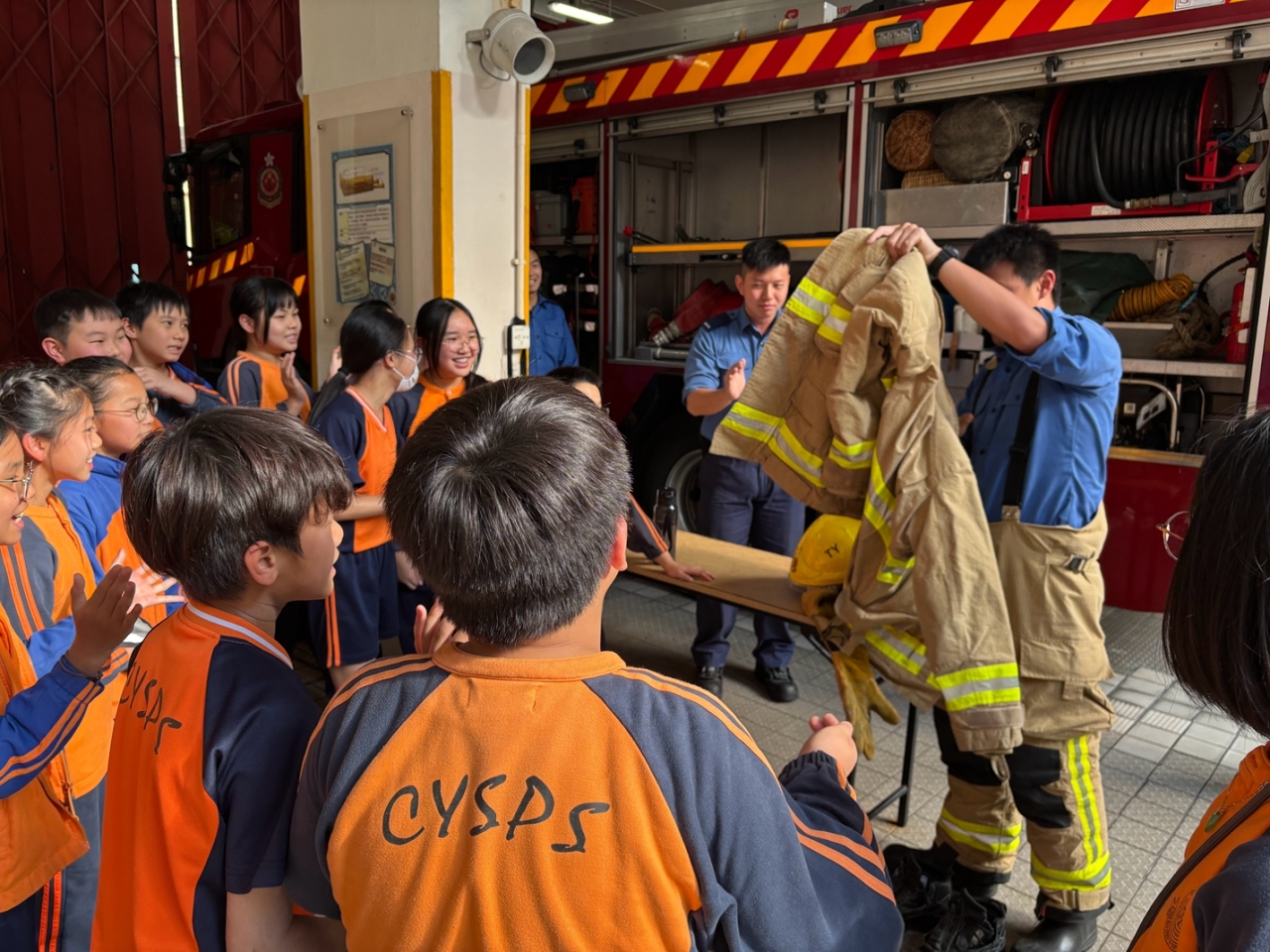 六年級於2025年11月24日和25日參觀青衣消防局,是次活動主要以了解消防員的工作和職業要求。當天消防員熱烈地介紹他們的工作,同時也展示了在工作中常用的工具,令學生大開眼界,同時也令學生更了解消防員工作的意義。