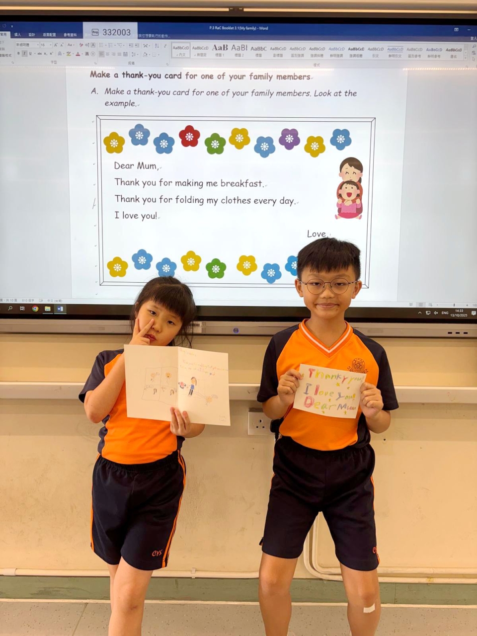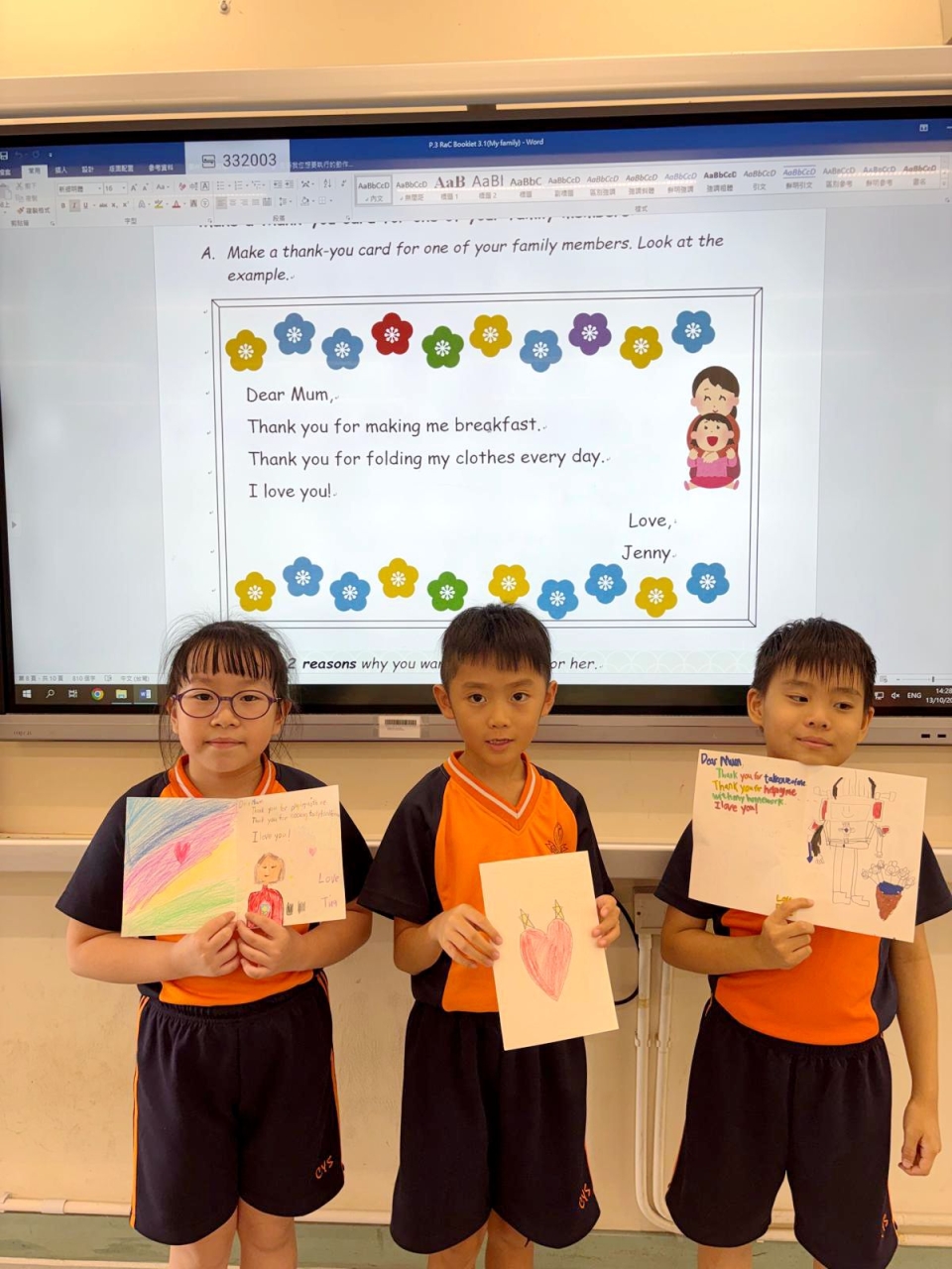 The theme of P3 Reading Across the Curriculum in semester 1 is ‘My Family.’ They read a book about grandparents. Then, they conducted an interview about what housework they can help with at home. Finally, they drew a thank-you card for one of their family members. The students were engaged in the activities and learned how to show love to their family members. They enjoyed the activities very much.