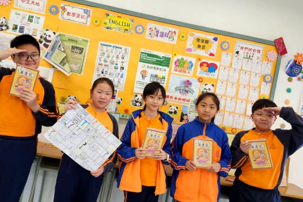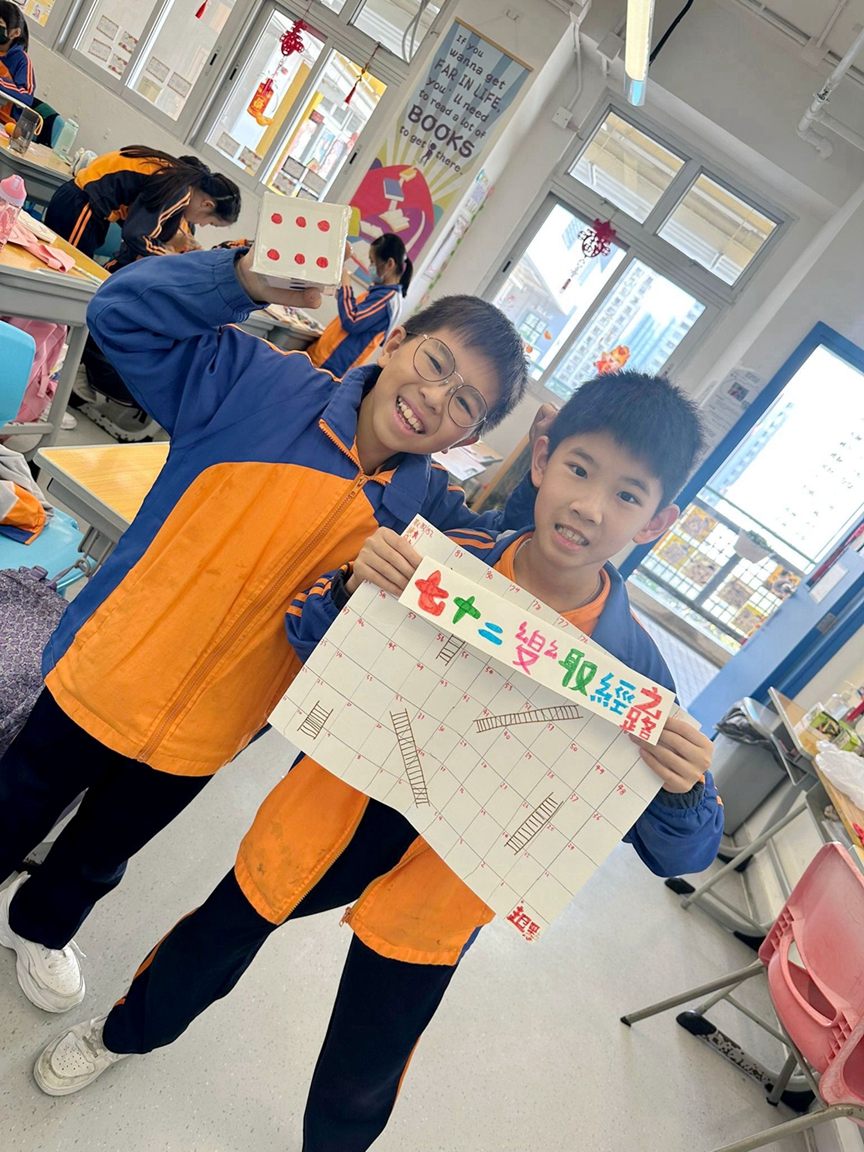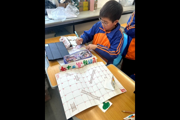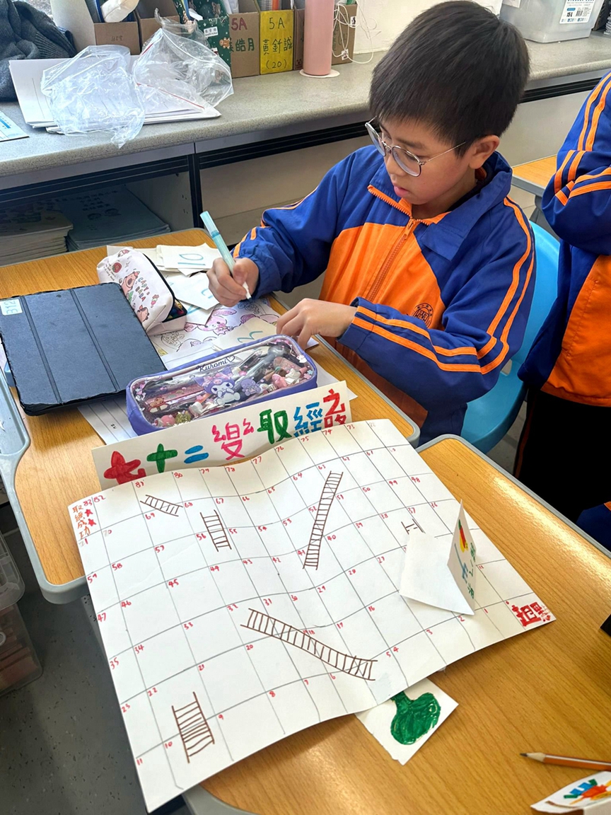 跨學科閱讀課是POWER-up 森動課程的重要組成部分,特別是在五年級的教材中,同學們閱讀了四大名著之一的《西遊記》。這本經典小說不僅豐富了學生的文化知識,還加深了他們對文學的欣賞能力。在課堂活動中,同學們積極參與製作棋盤,將所學的知識實踐出來。棋盤的製作過程不僅讓學生們了解了《西遊記》的故事情節和人物,更激發了他們的創造力。透過分工合作,同學們學會了如何有效地溝通與協作,從而培養了團隊合作的精神。