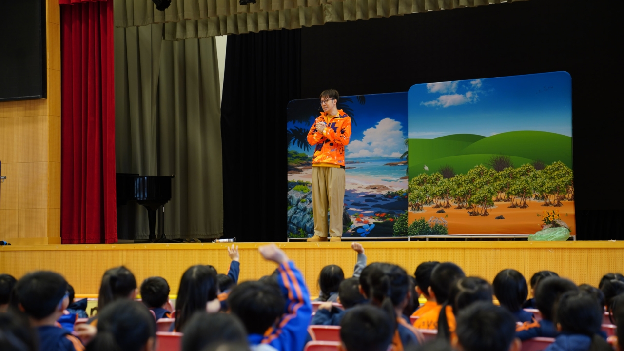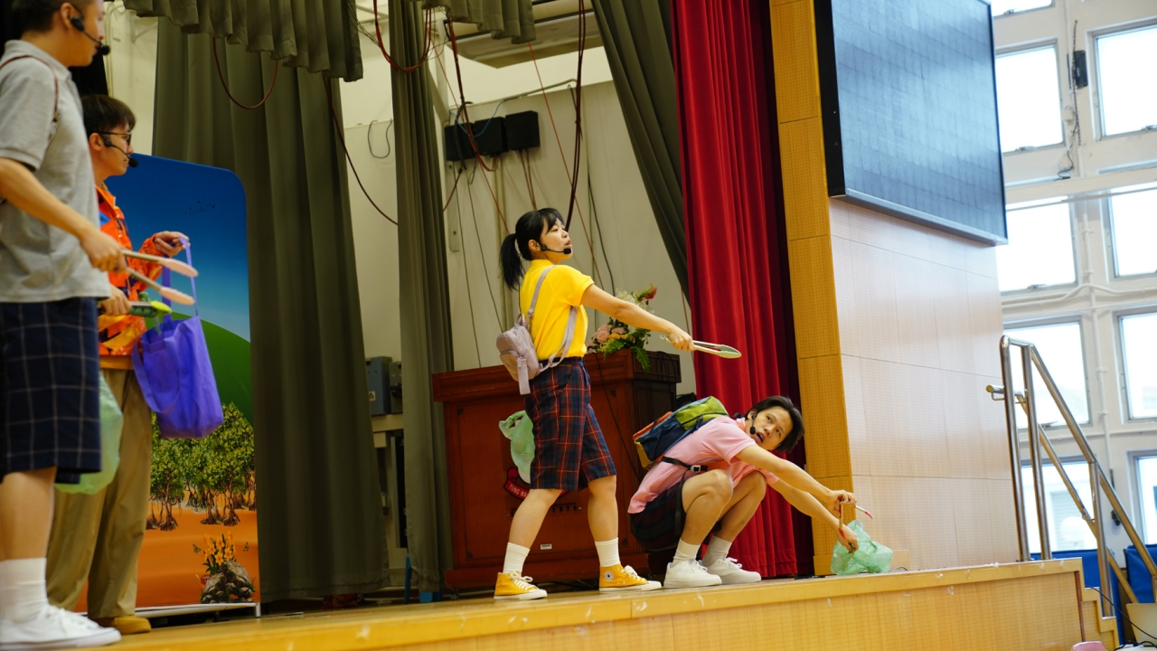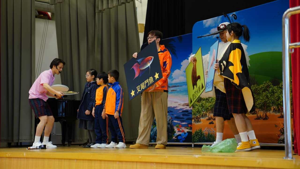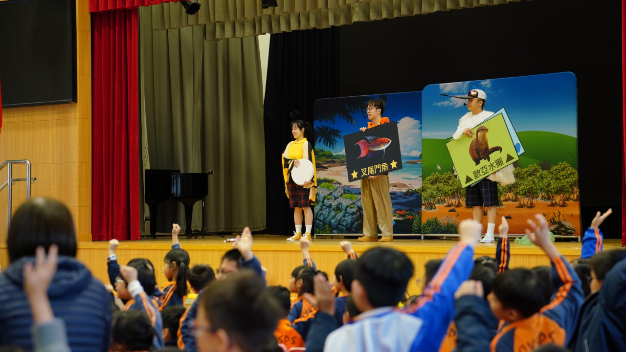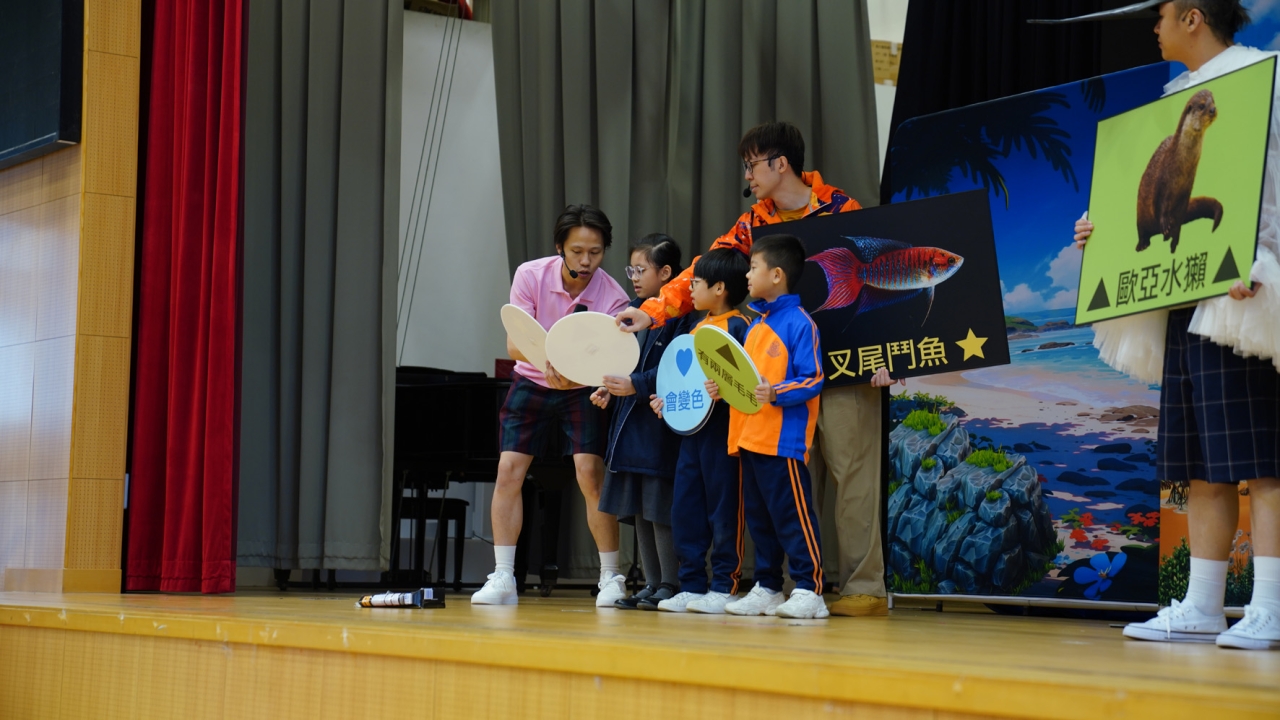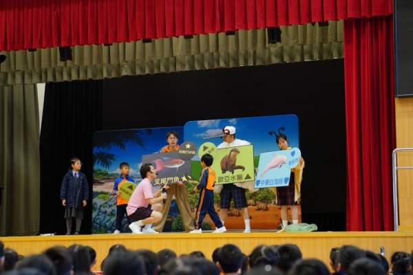 學校為一至三年級同學安排了環保劇場《尋找牠牠牠的故事》 劇場以貼近小學生的生活體驗及生活化內容,啟發同學反思及檢討平時的生活習慣,共同守護「生物多樣性」 愛護地球。