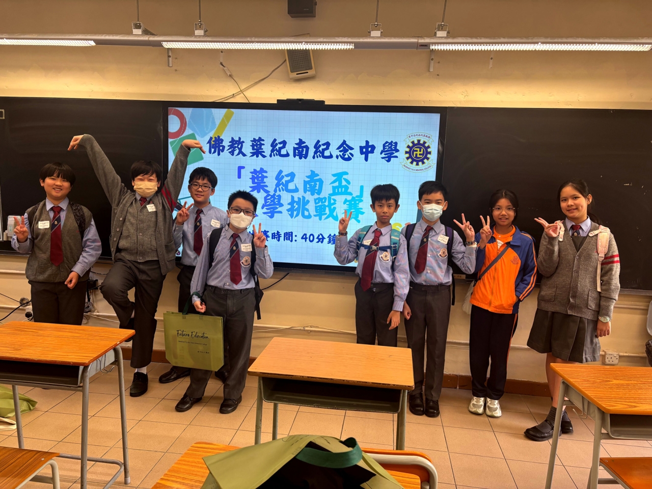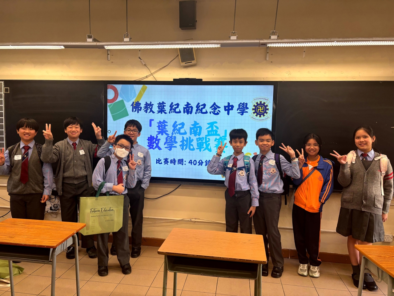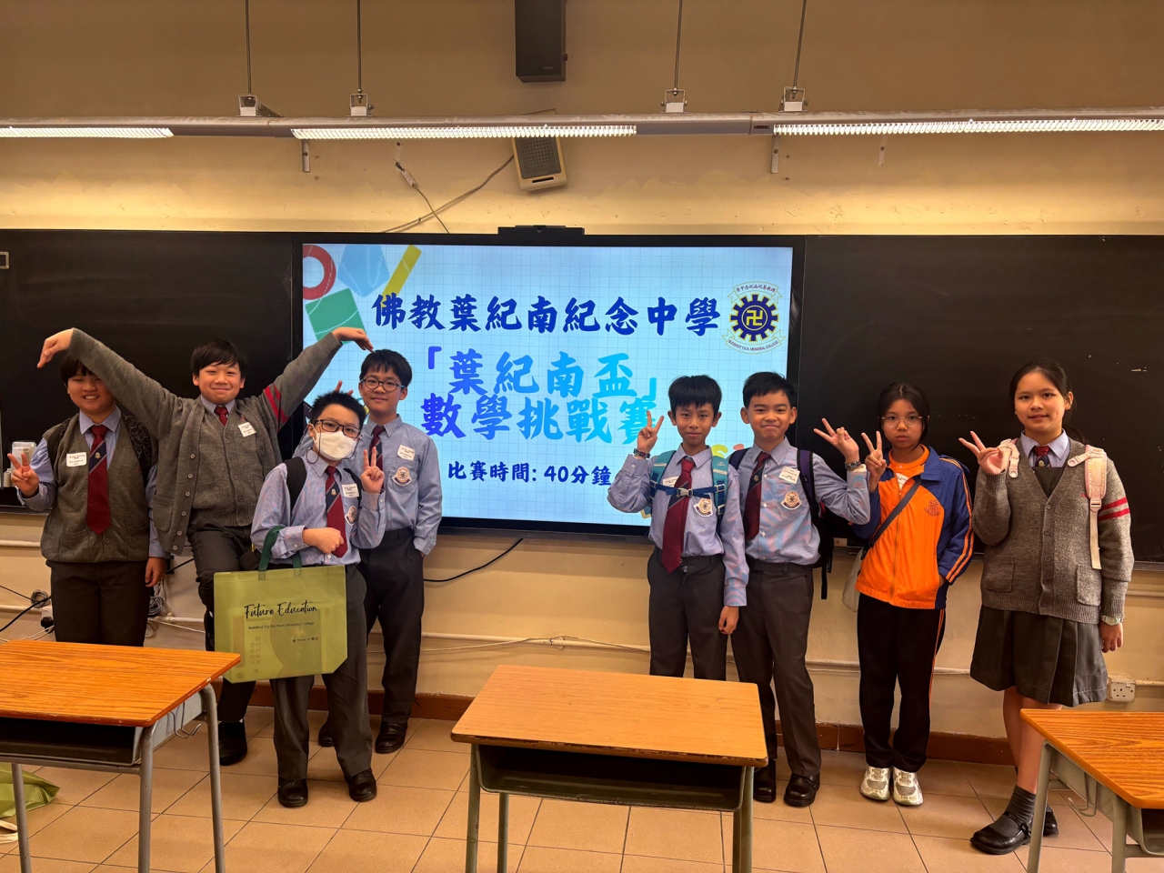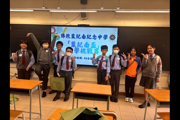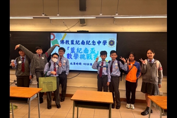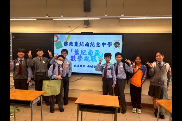本校8位六年級同學於2025年11月22日參加了由佛教葉紀南紀念中學主辦的【葉紀南盃】數學挑戰賽。當天參賽人數眾多,比賽激烈,本校不負眾望,在比賽中獲得三個個人二等獎和一個個人三等獎。
