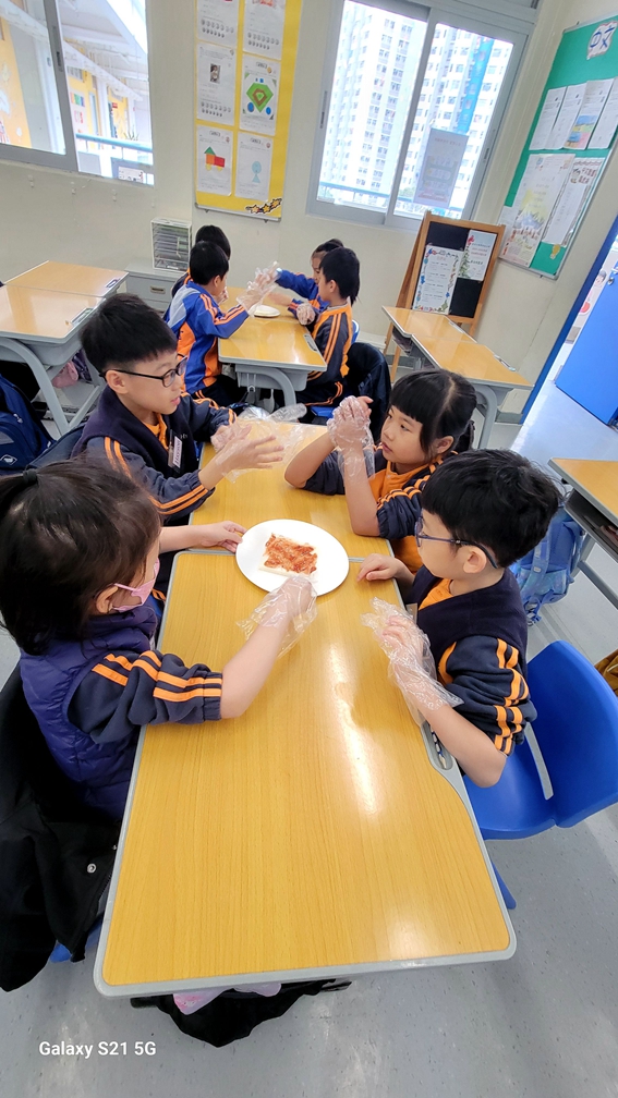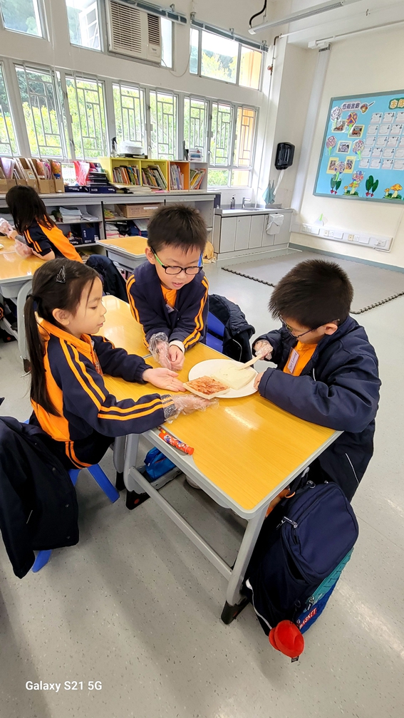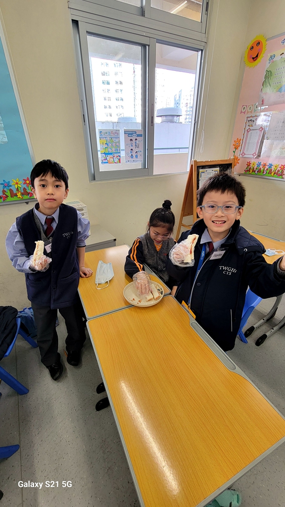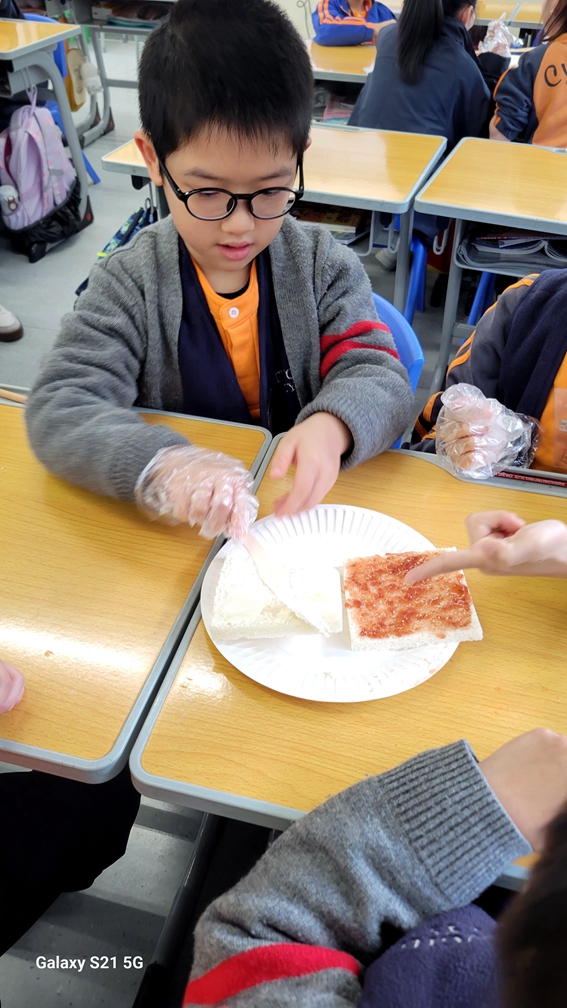 The P.2 3E programme was about making finger sandwiches. Students learned the names of the food items and the steps to make their own sandwiches. They enjoyed both the making process and eating the sandwiches. The activity also helped them understand the importance of treasuring food.