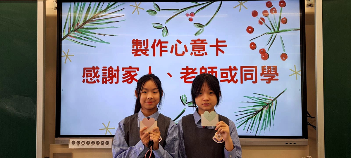 本校於12月19日舉行了感恩小聚,同學們透過寫心意卡、分享禮物及食物,與老師同學共聚了開懷的一個上午。期望同學與家人共渡佳節之餘,不忘感恩自己擁有的一切。