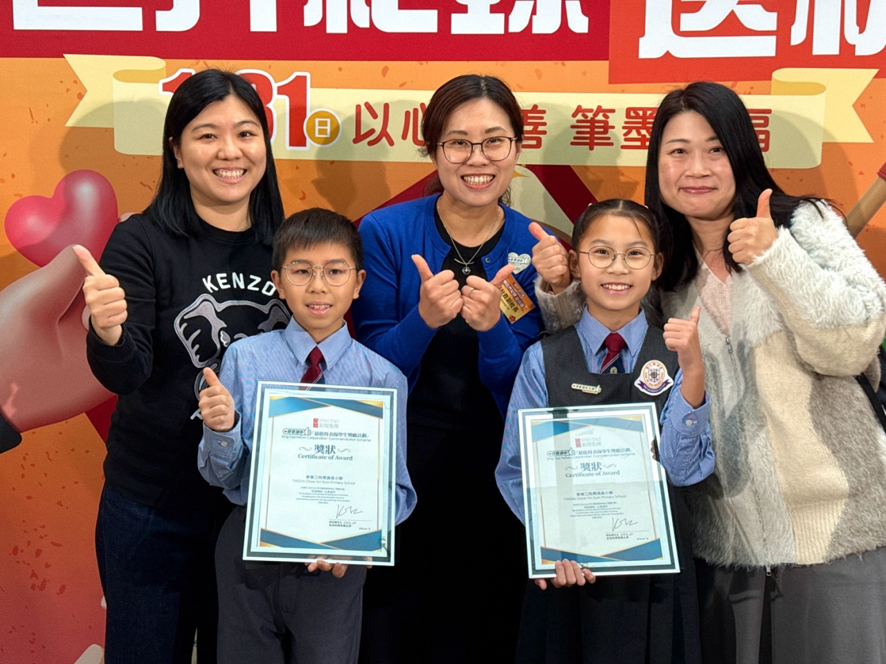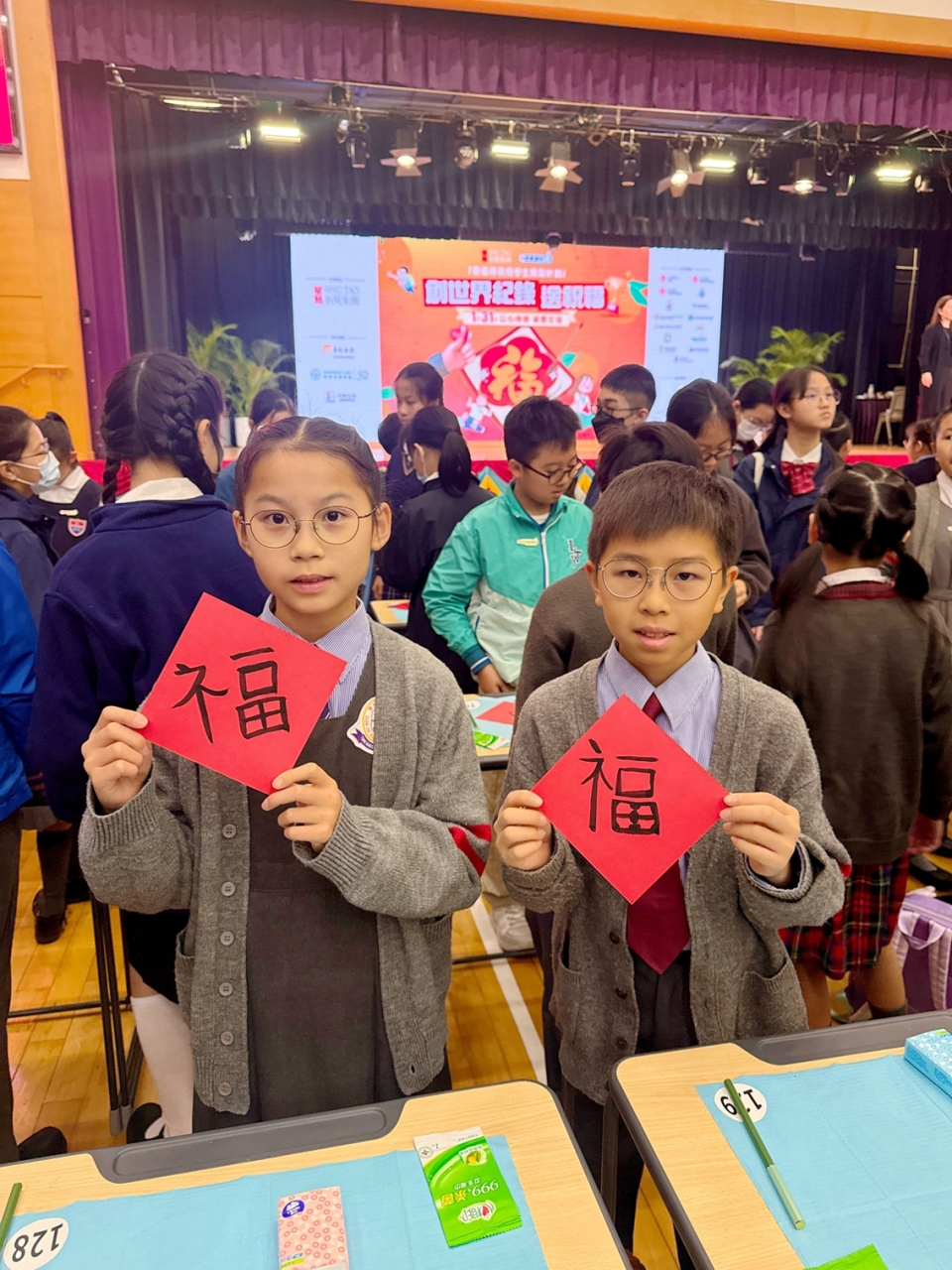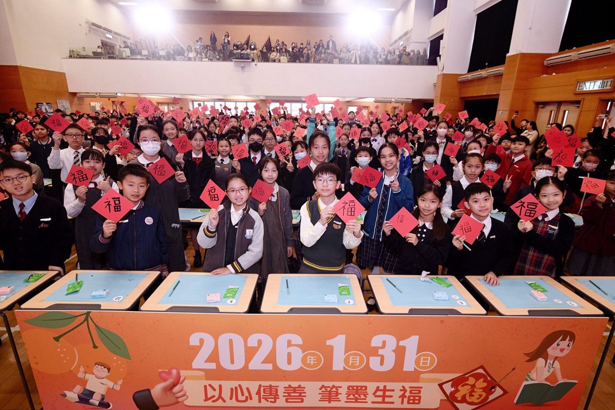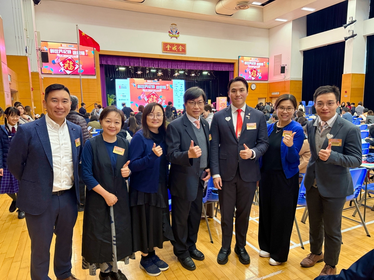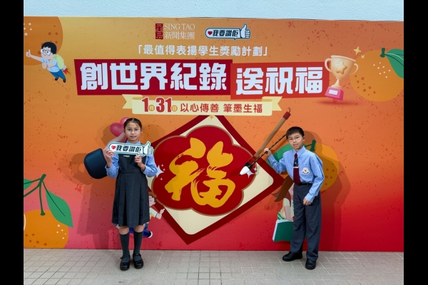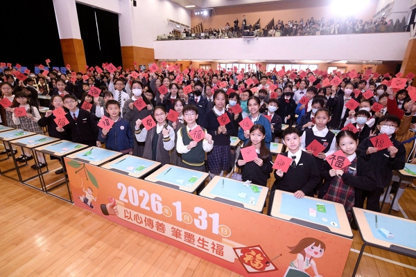 當日,楊副校長帶領兩位學生大使參加大會的「以心傳善 筆墨生福 共創世界紀錄 」活動,共同以書法筆書寫「福」字,攜手挑戰共創世界紀錄,並趁農曆新年來臨之際向大家傳遞祝福,與在場一眾嘉賓一起發揮暖暖的正能量!