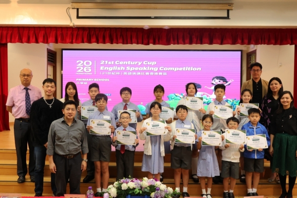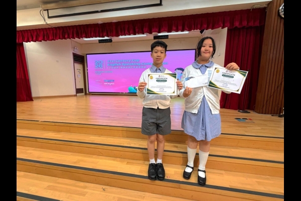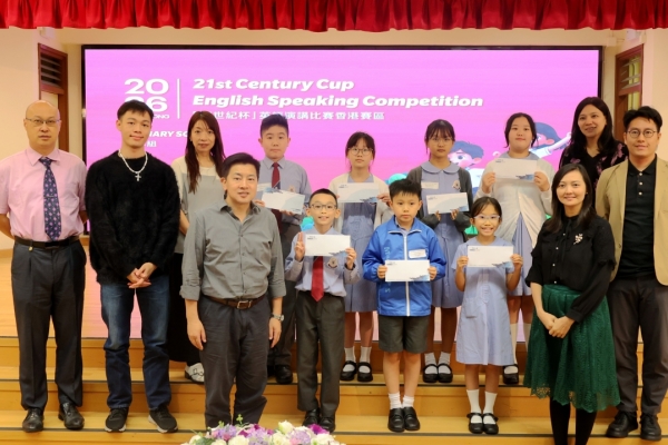 為使同學有更多比賽的經驗及互相觀摩學習的機會,東華三院小學舉行了聯校英語演講比賽,當天,8位四至六年級同學連同2位參賽同學一同前往東華三院冼次雲小學出席比賽。最後,六年級的易同學脫穎而出,並獲得「21世紀杯」全國英語演講比賽的初賽資格。恭喜!恭喜!