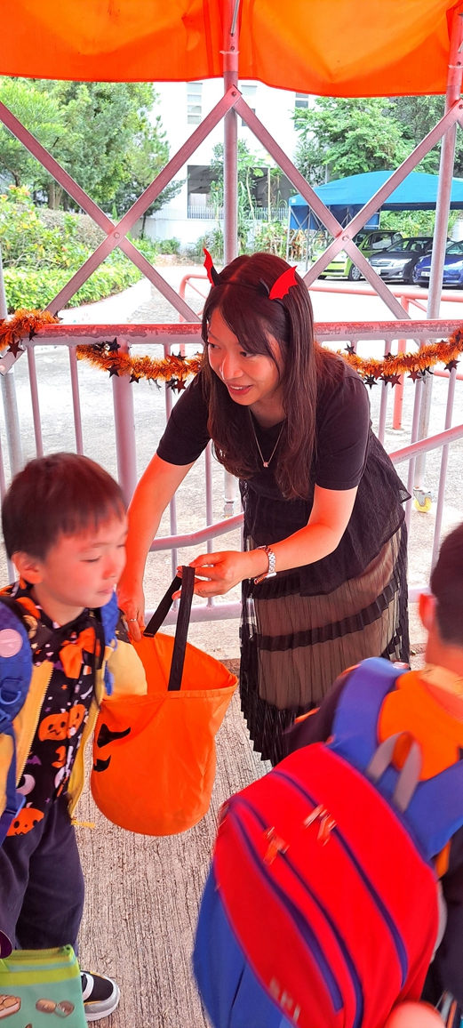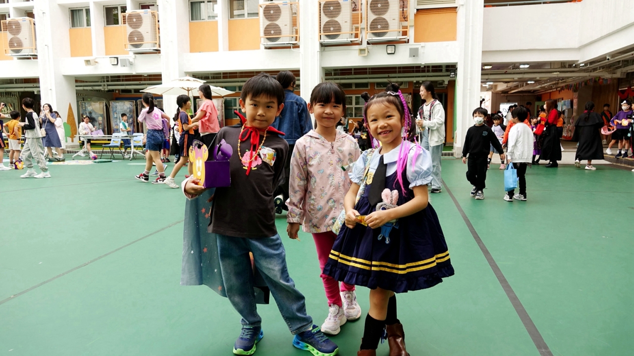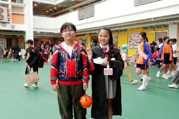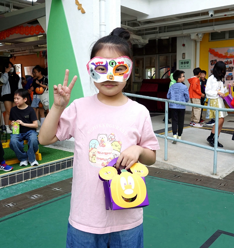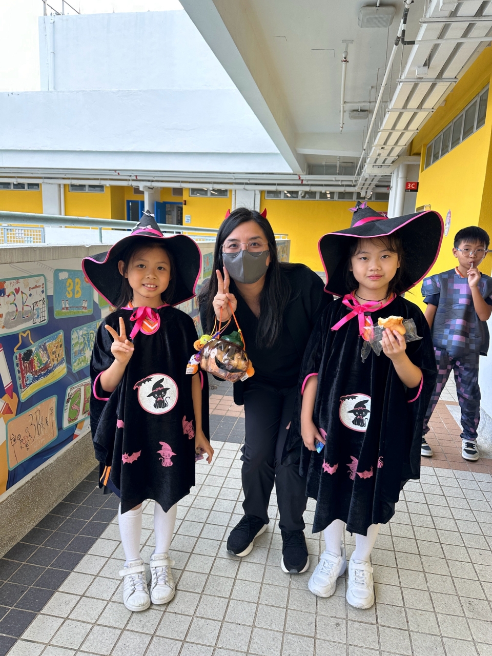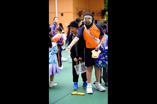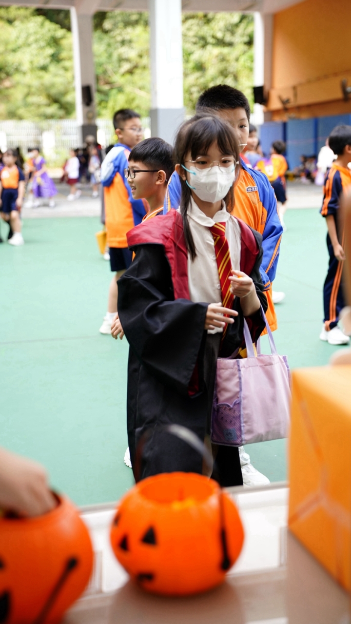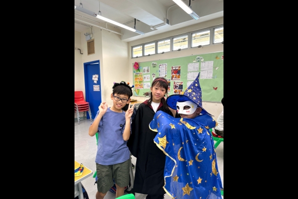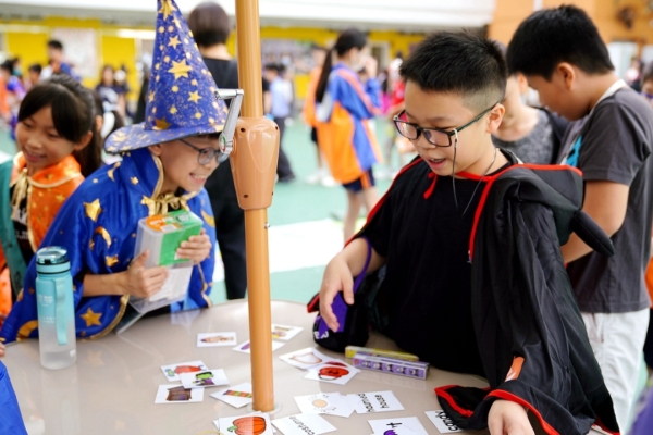 為使同學能認識不同國家的文化,本校於10月31日安排了萬聖節活動,同學當天穿上萬聖節服飾及戴上自己設計的面具回校,同學除了可參與攤位遊戲,還從校長及外籍老師手上拿到糖果,氣氛相當熱鬧呢!