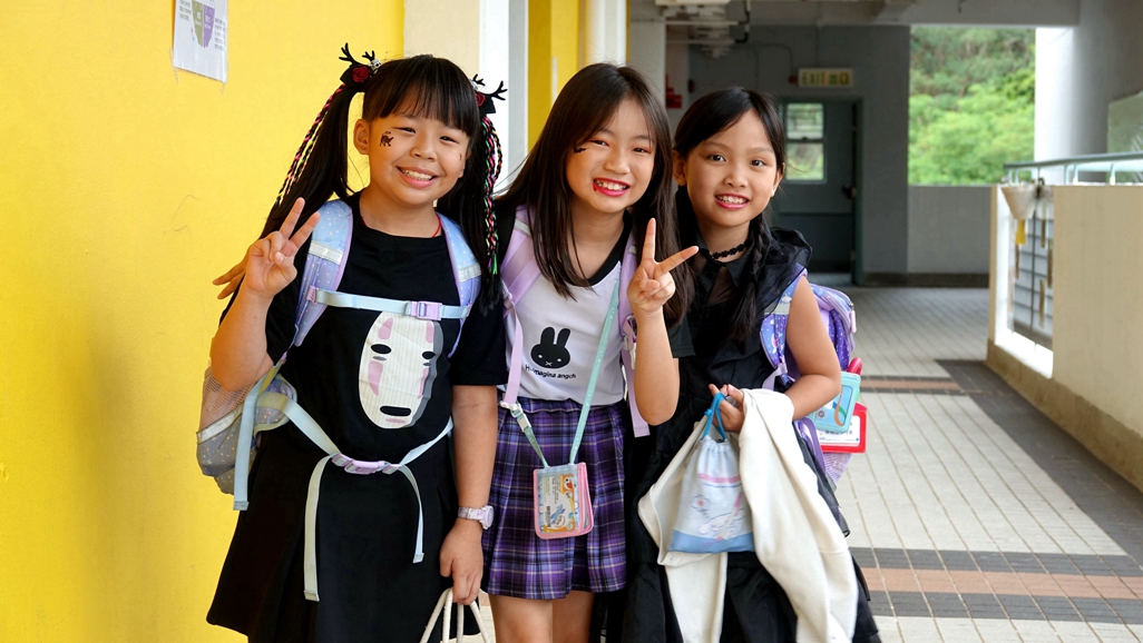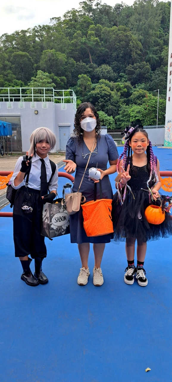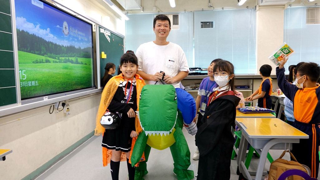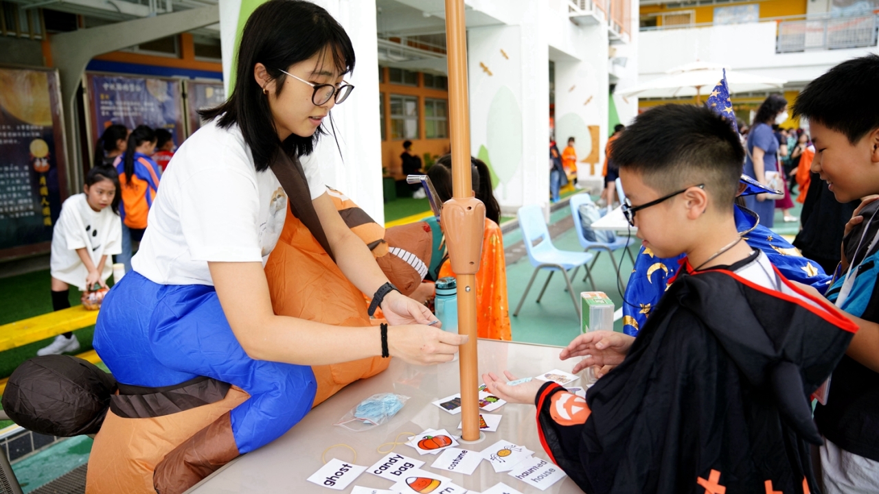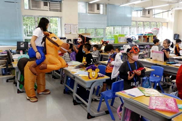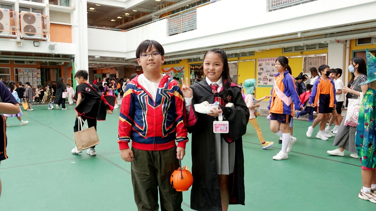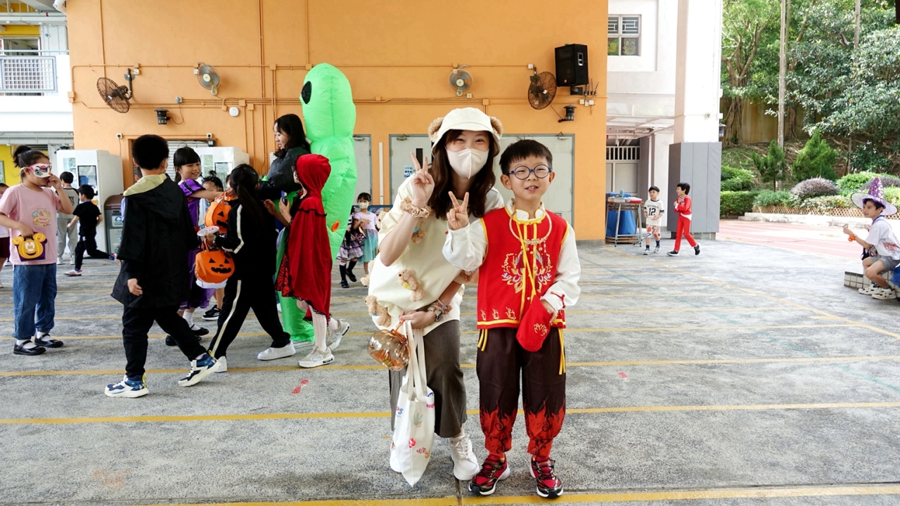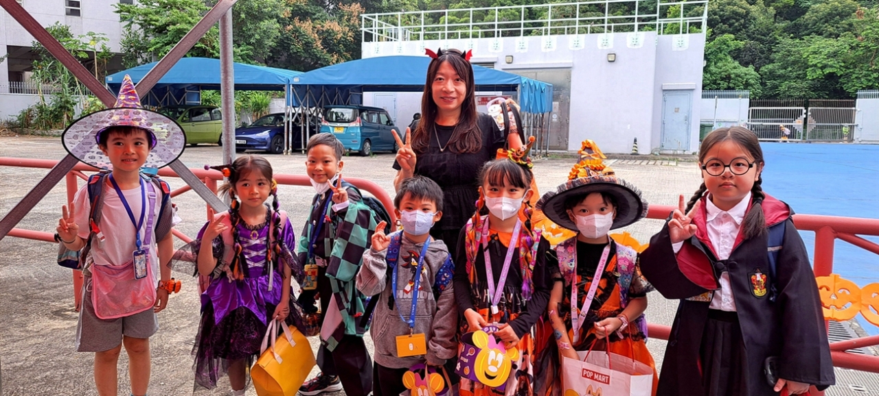 為使同學能認識不同國家的文化,本校於10月31日安排了萬聖節活動,同學當天穿上萬聖節服飾及戴上自己設計的面具回校,同學除了可參與攤位遊戲,還從校長及外籍老師手上拿到糖果,氣氛相當熱鬧呢!