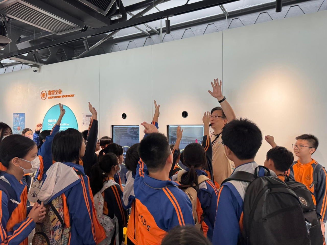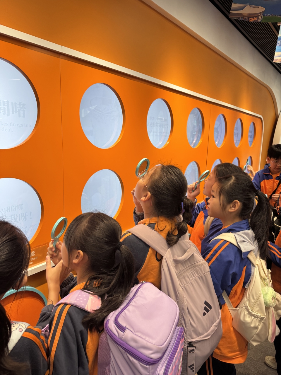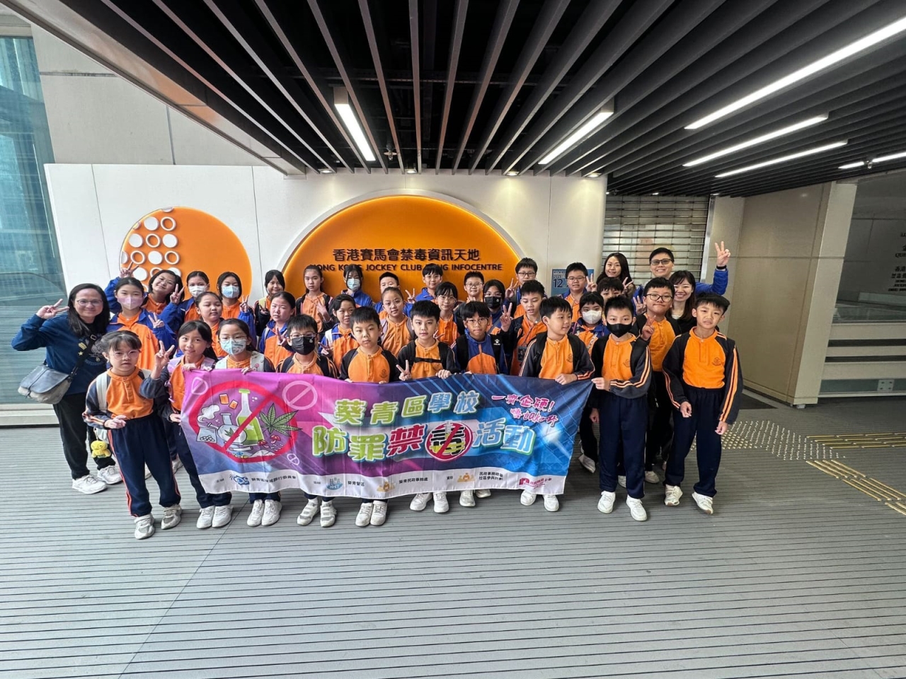 全校安排了33位P.4-6學生參加由葵青區撲滅罪行委員會、葵青警區及葵青民政事務處合辦的「葵青區學校防罪禁毒活動」。我們當天早上先到香港賽馬會禁毒資訊天地,透過多元媒體展示、互動遊戲、參與式體驗等方式,同學得以從視、聽、感學習禁毒資訊,更加明白遠離毒害的重要性。