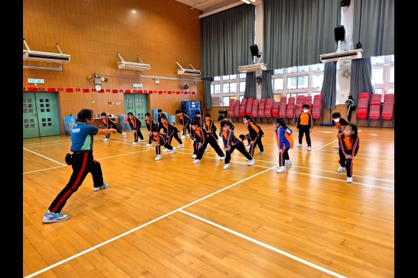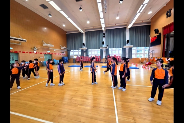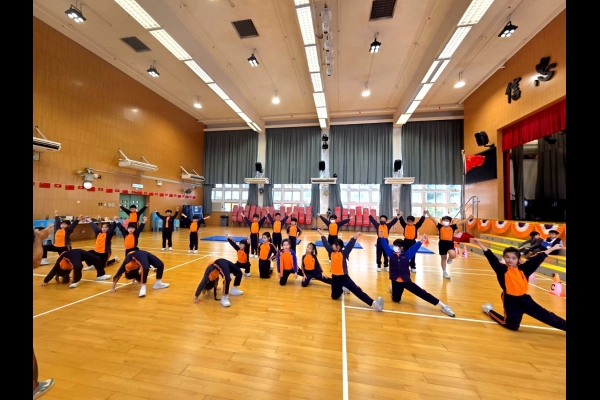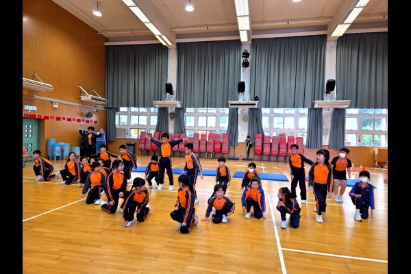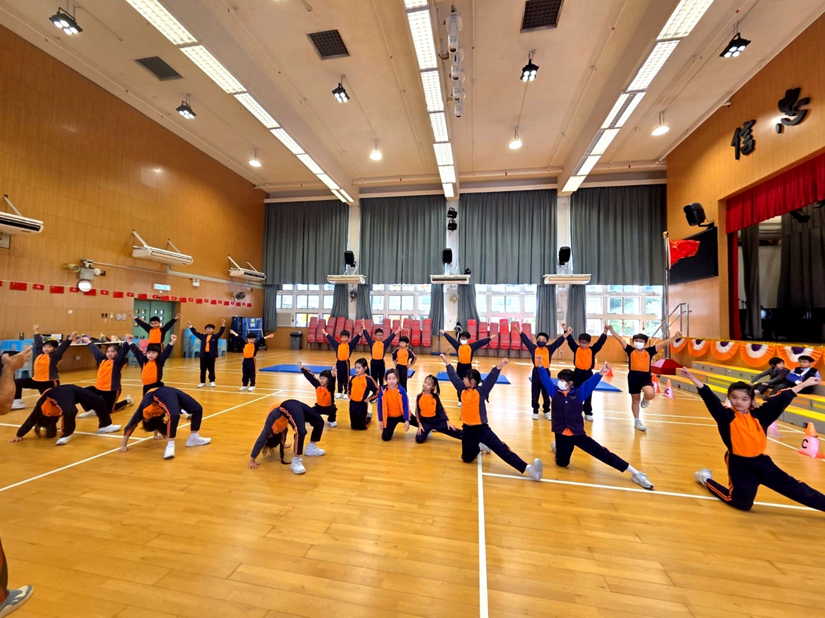 三年級進行全方位學習課-啦啦隊課堂,同學學習啦啦隊的各個動作,表現投入,享受當中的樂趣。