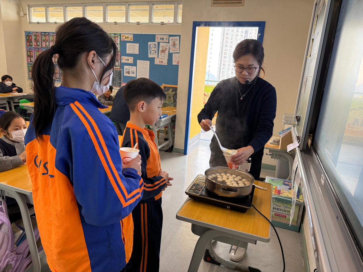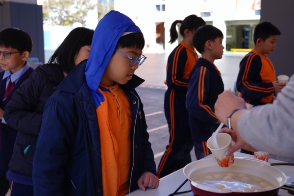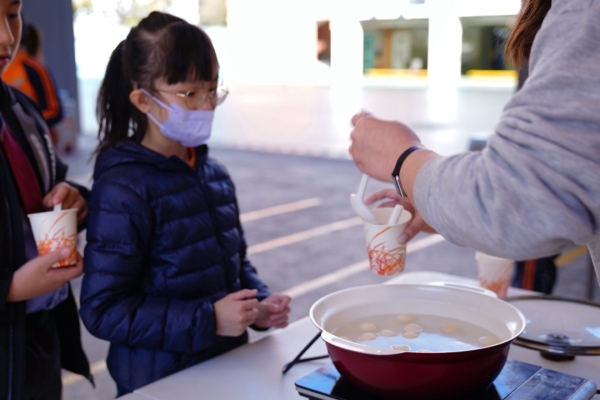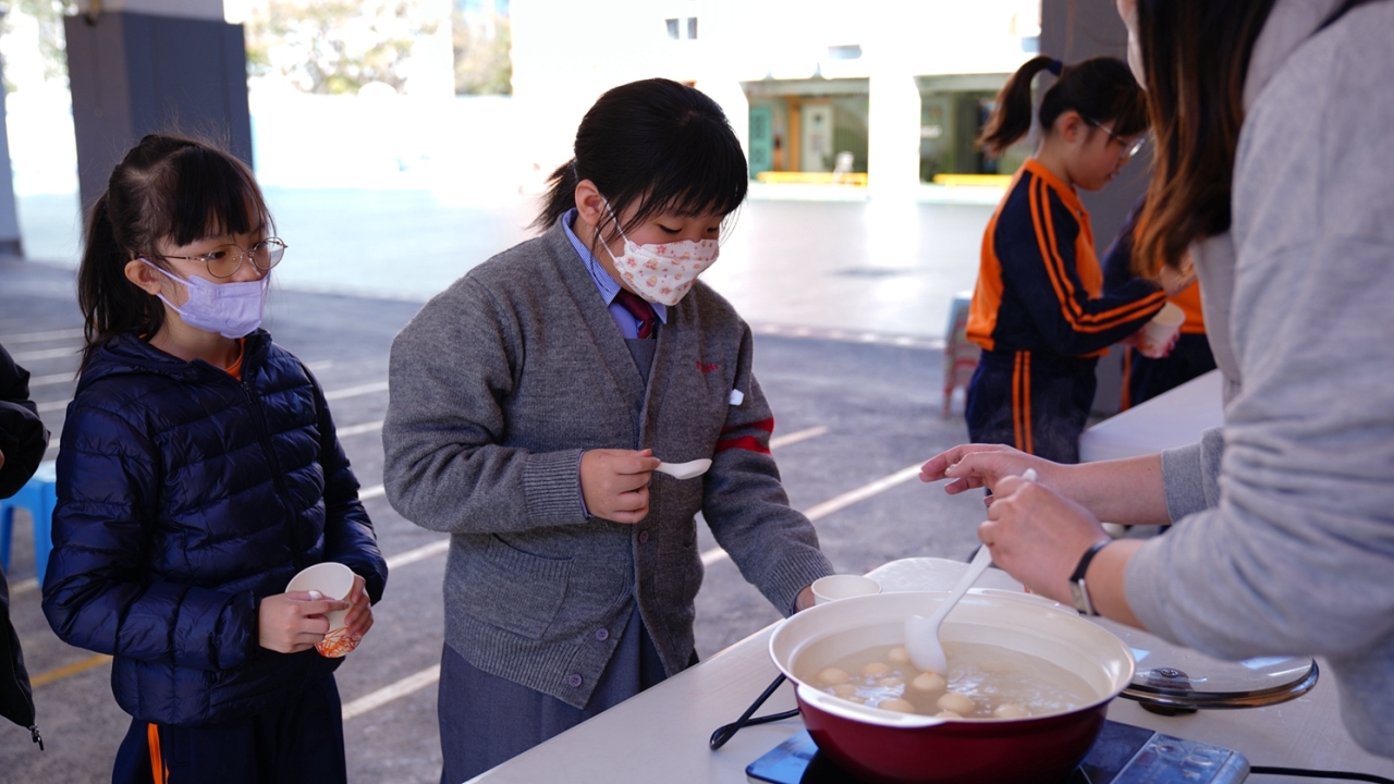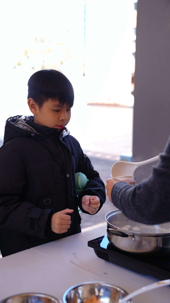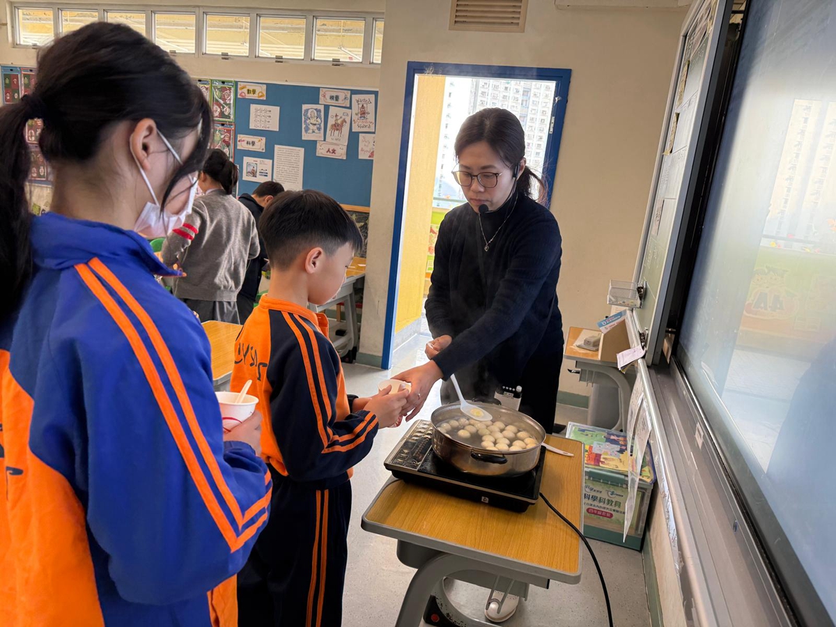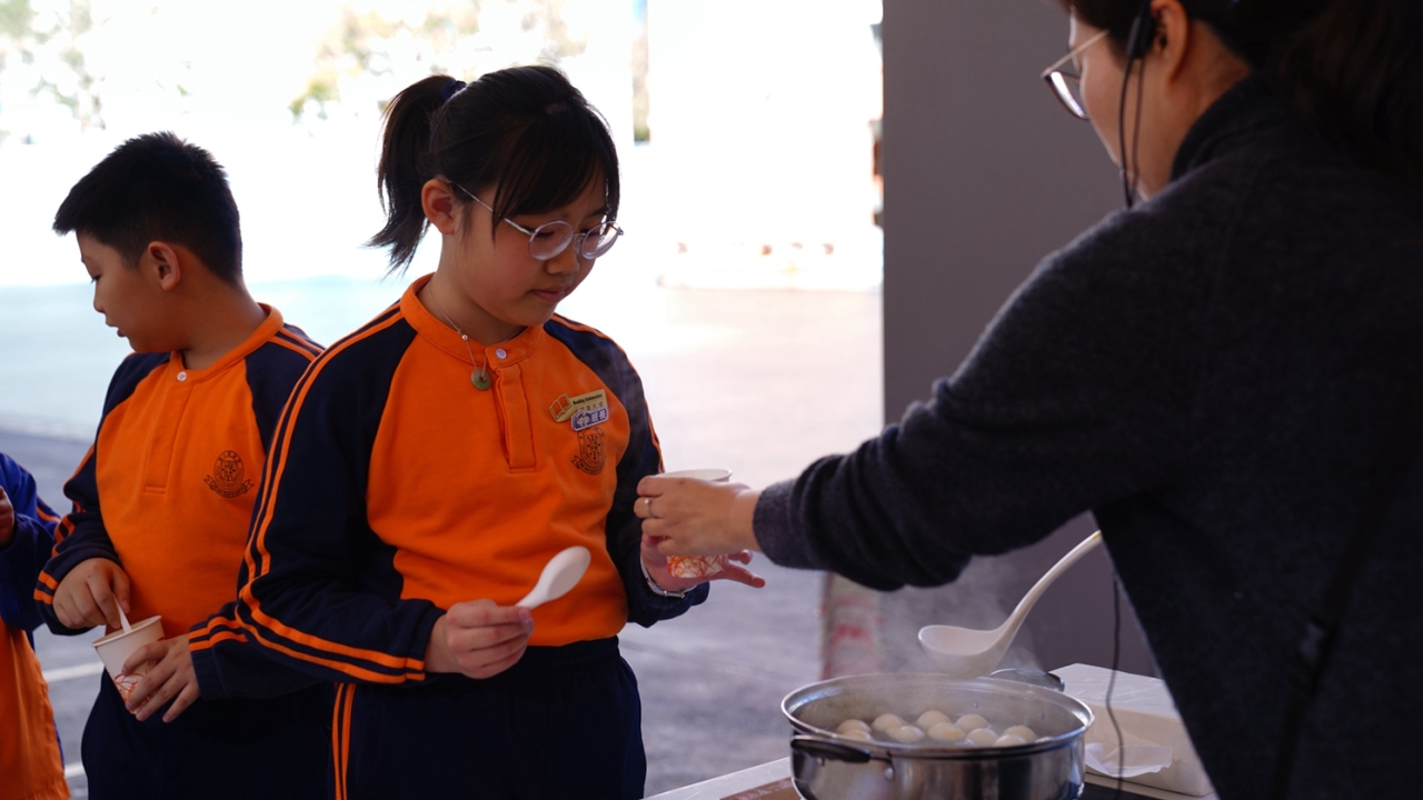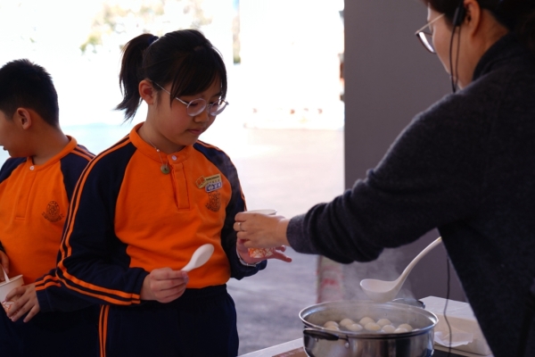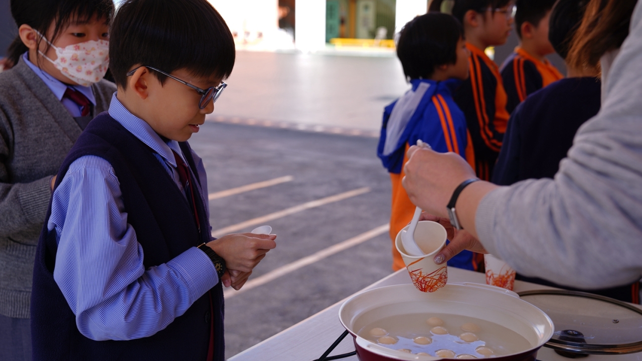 四年級學生於專題研習課認識中國傳統小吃—湯圓。他們不僅品嚐到軟糯香甜的湯丸,更從熱氣蒸騰中感受到團圓溫暖的中華魅力。