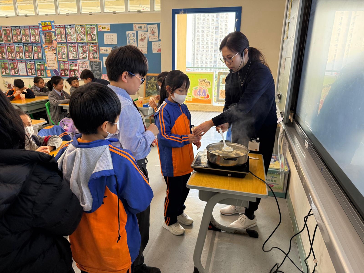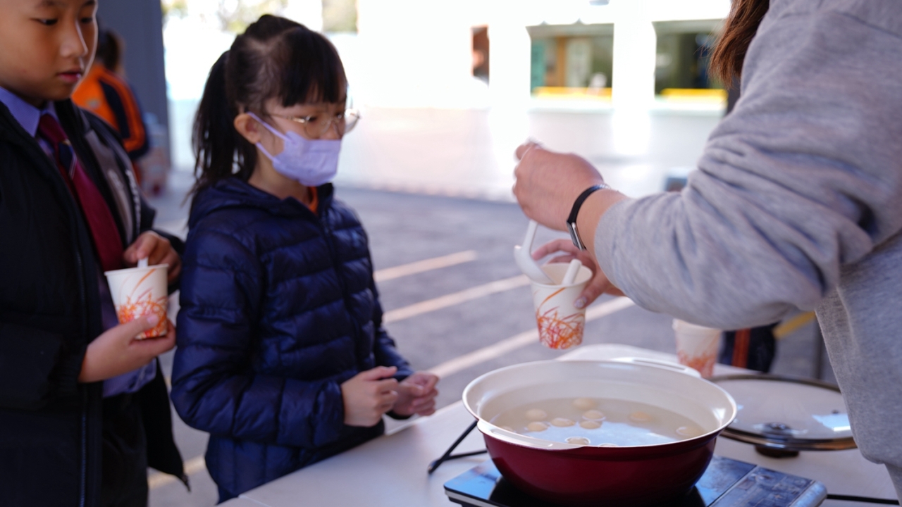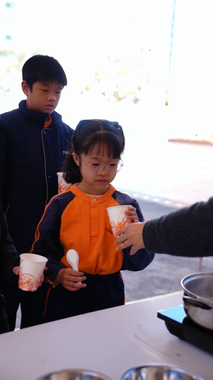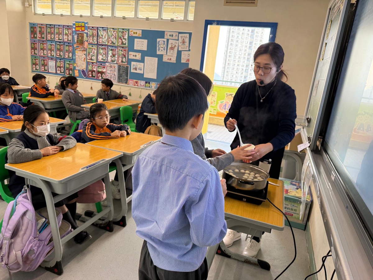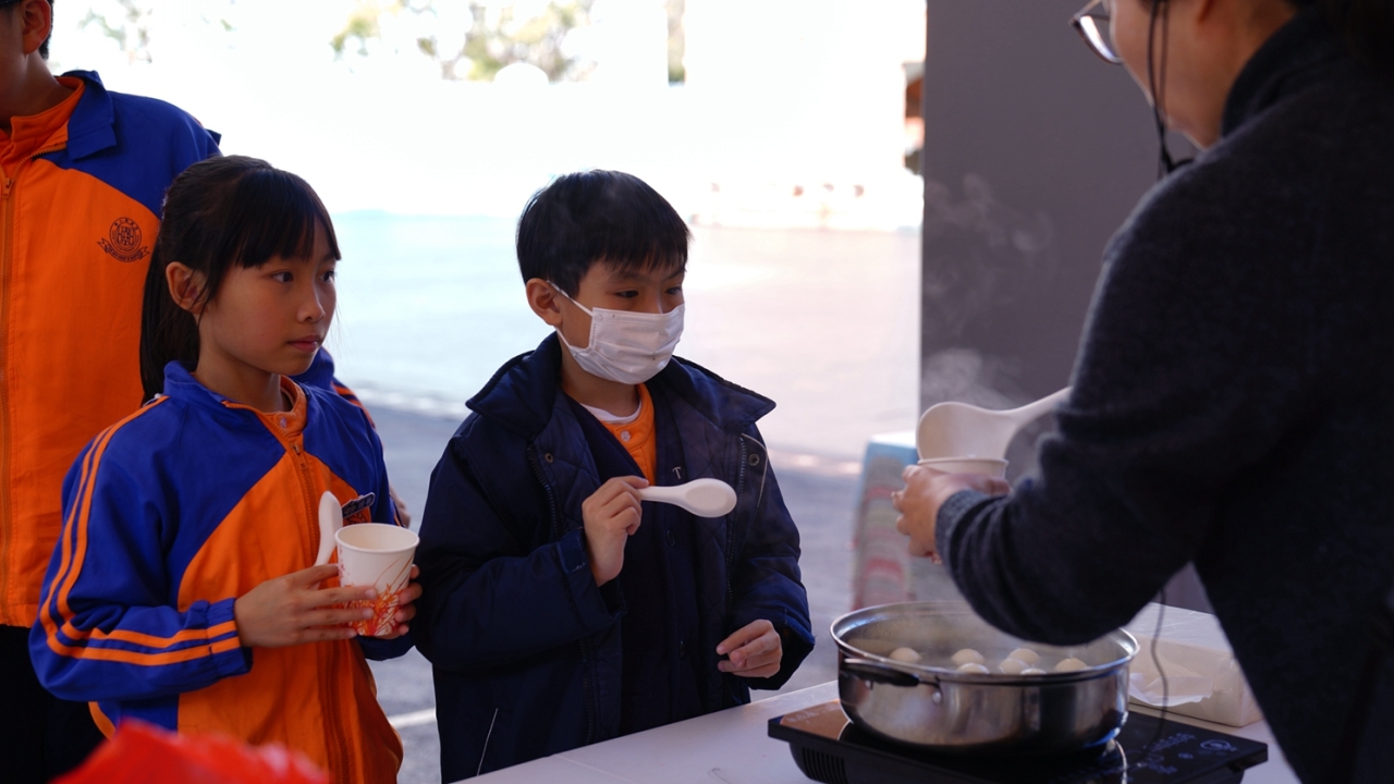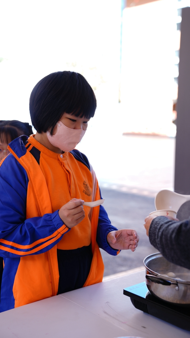 四年級學生於專題研習課認識中國傳統小吃—湯圓。他們不僅品嚐到軟糯香甜的湯丸,更從熱氣蒸騰中感受到團圓溫暖的中華魅力。