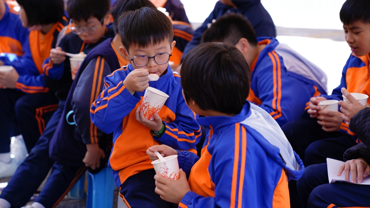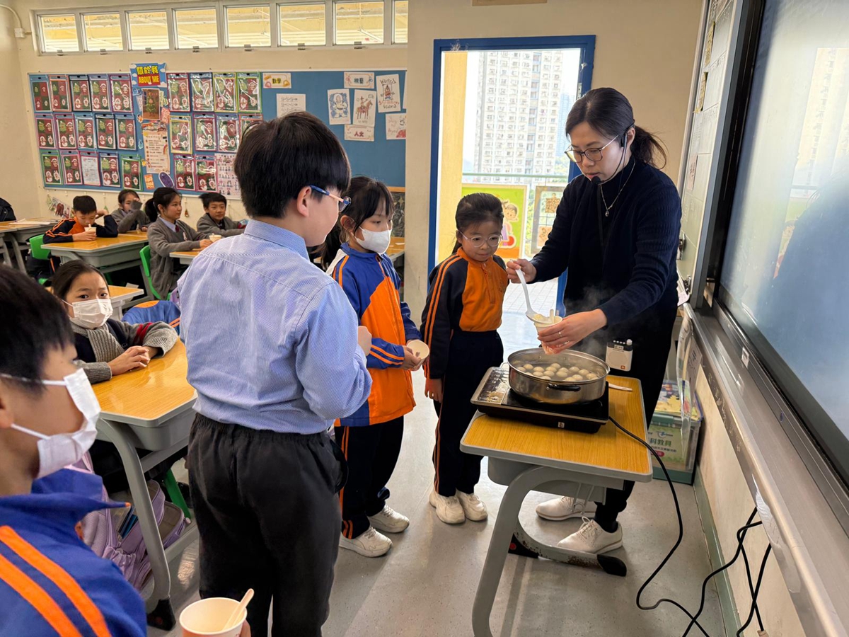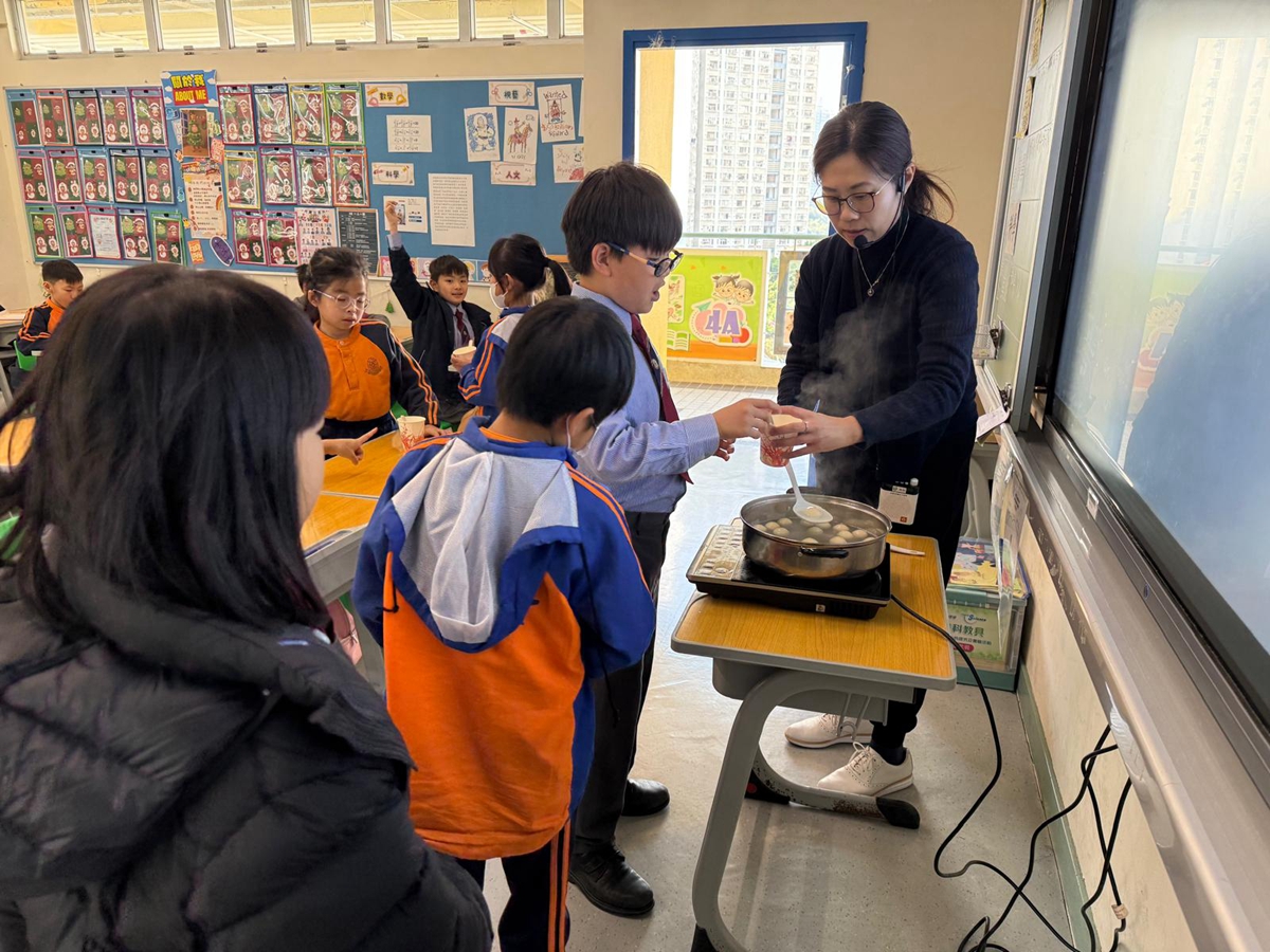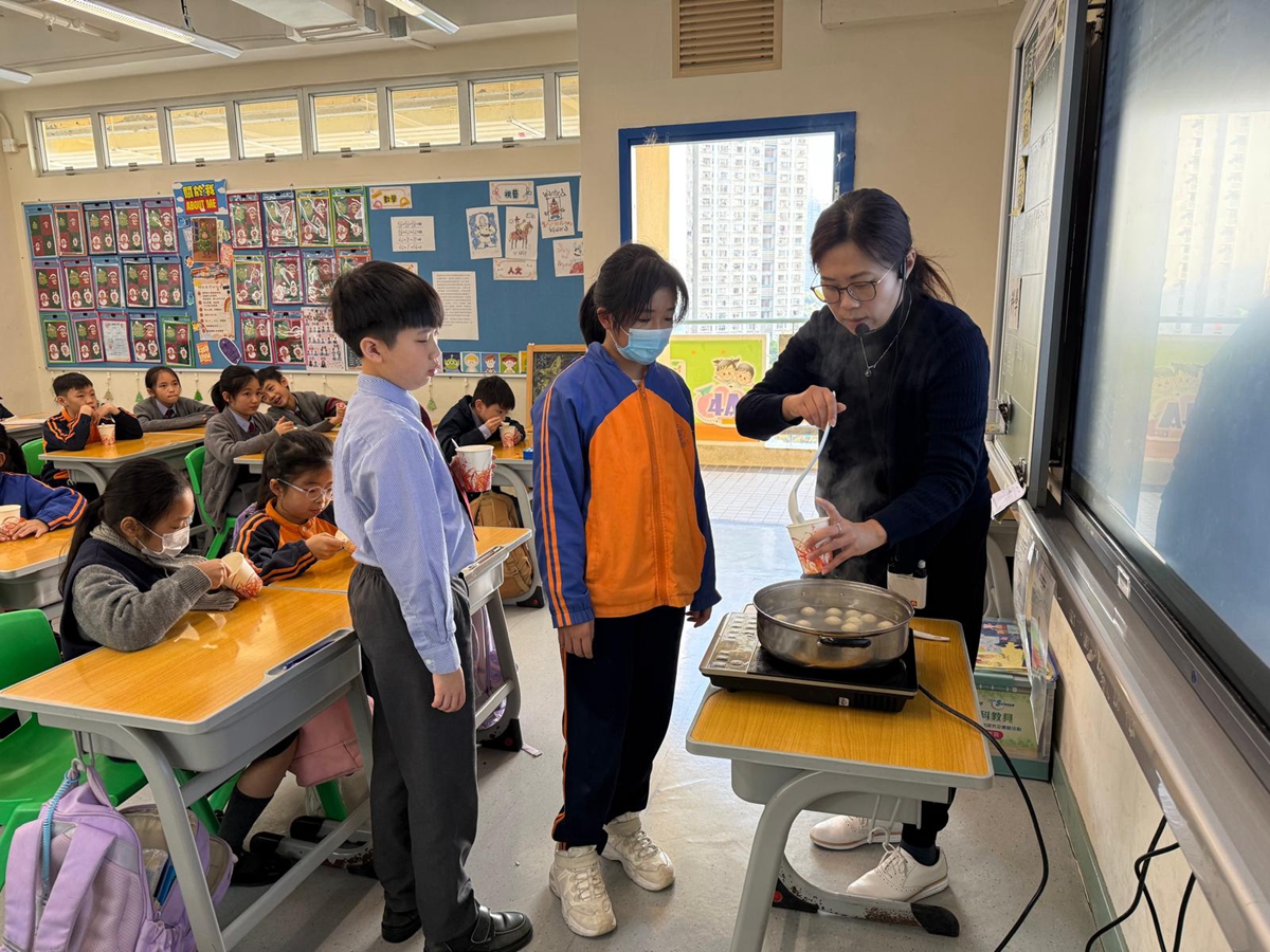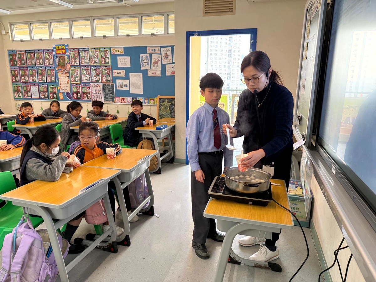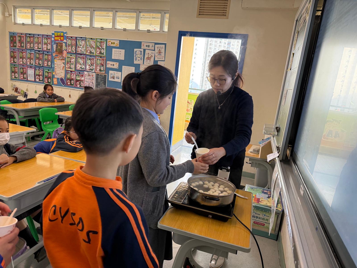四年級學生於專題研習課認識中國傳統小吃—湯圓。他們不僅品嚐到軟糯香甜的湯丸,更從熱氣蒸騰中感受到團圓溫暖的中華魅力。