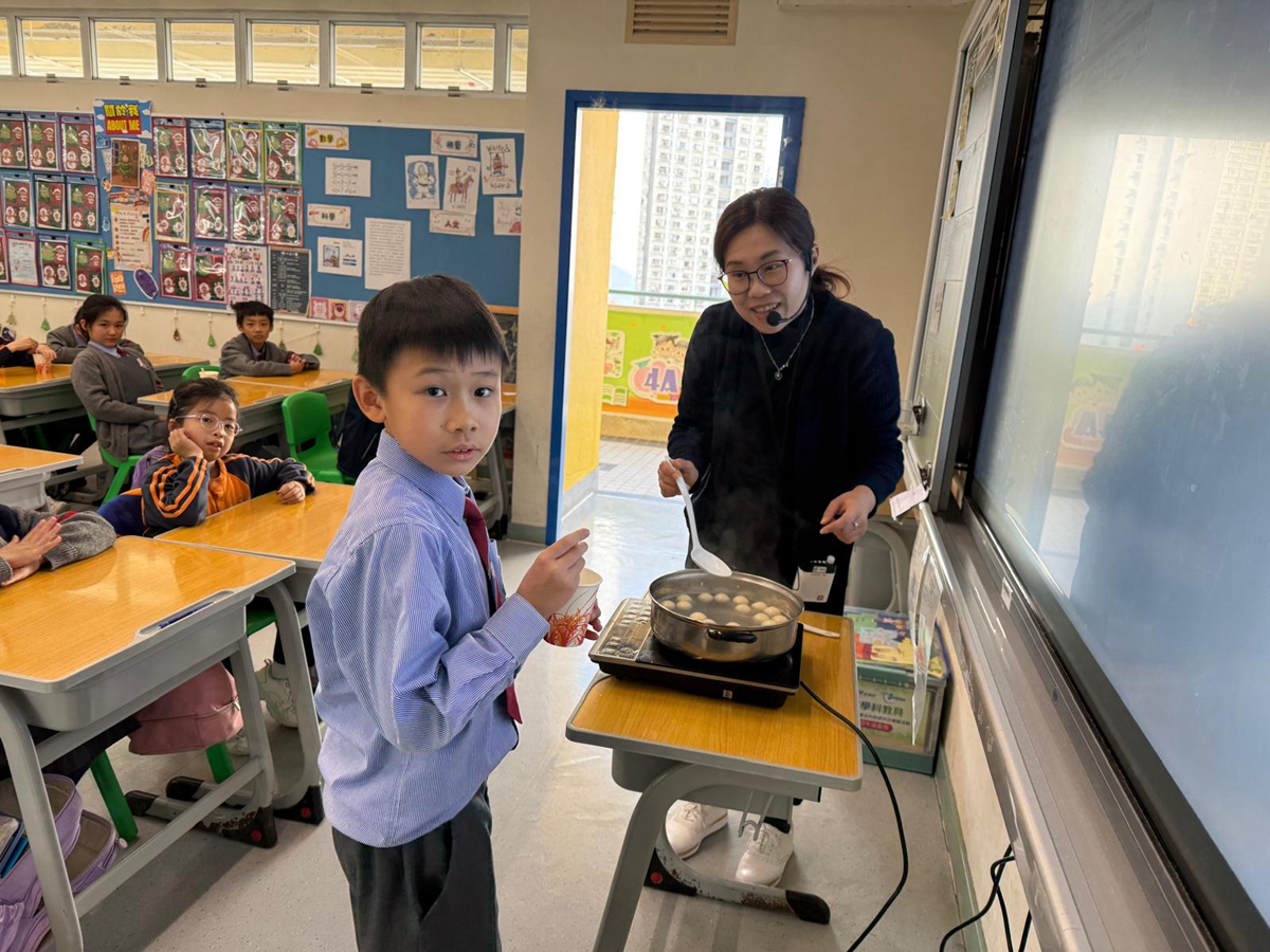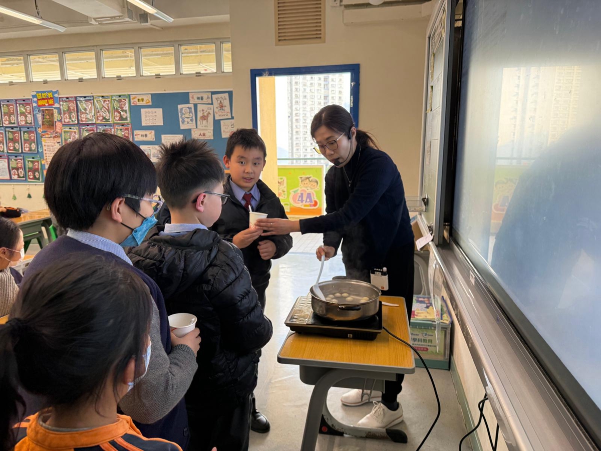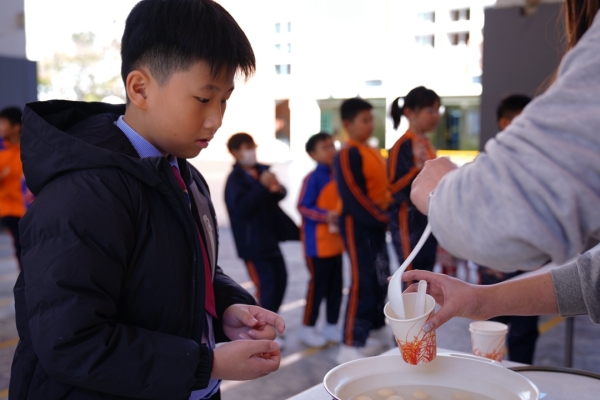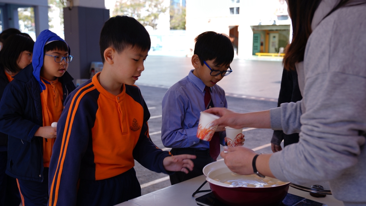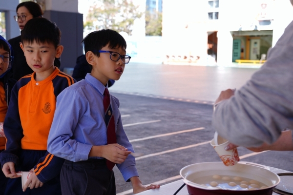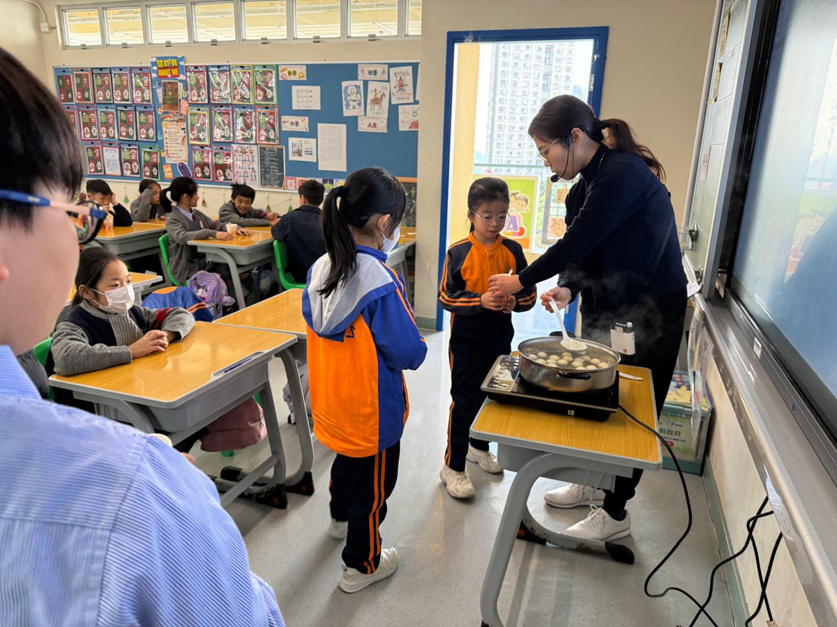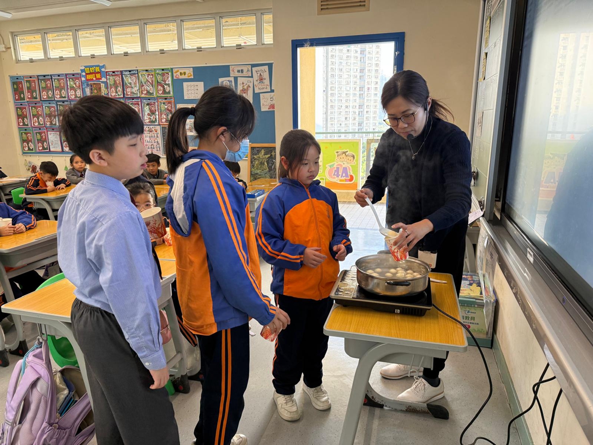 四年級學生於專題研習課認識中國傳統小吃—湯圓。他們不僅品嚐到軟糯香甜的湯丸,更從熱氣蒸騰中感受到團圓溫暖的中華魅力。