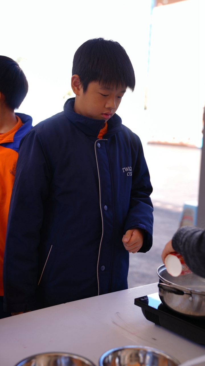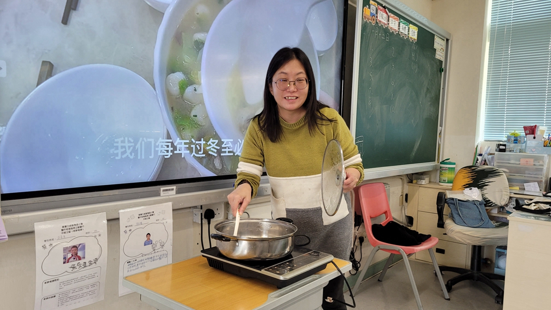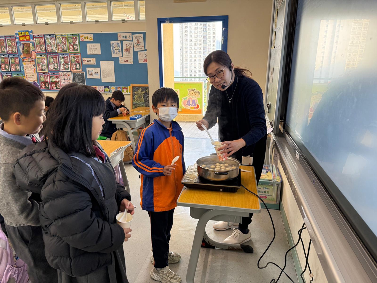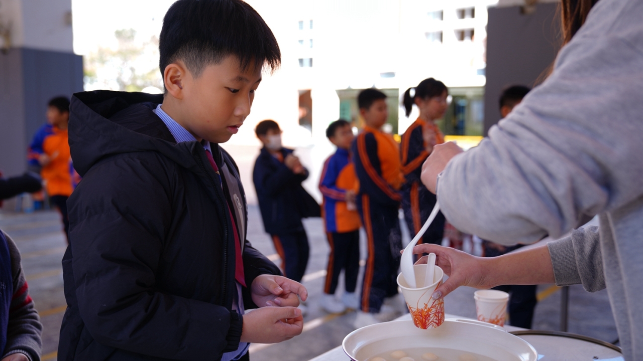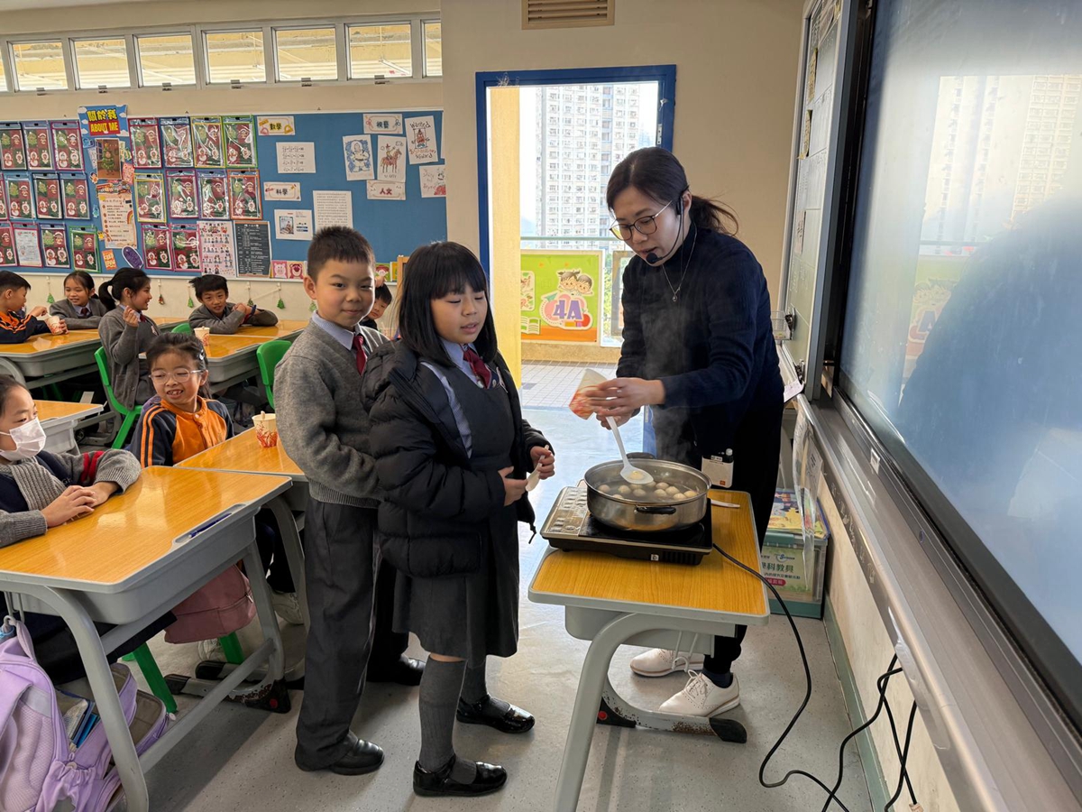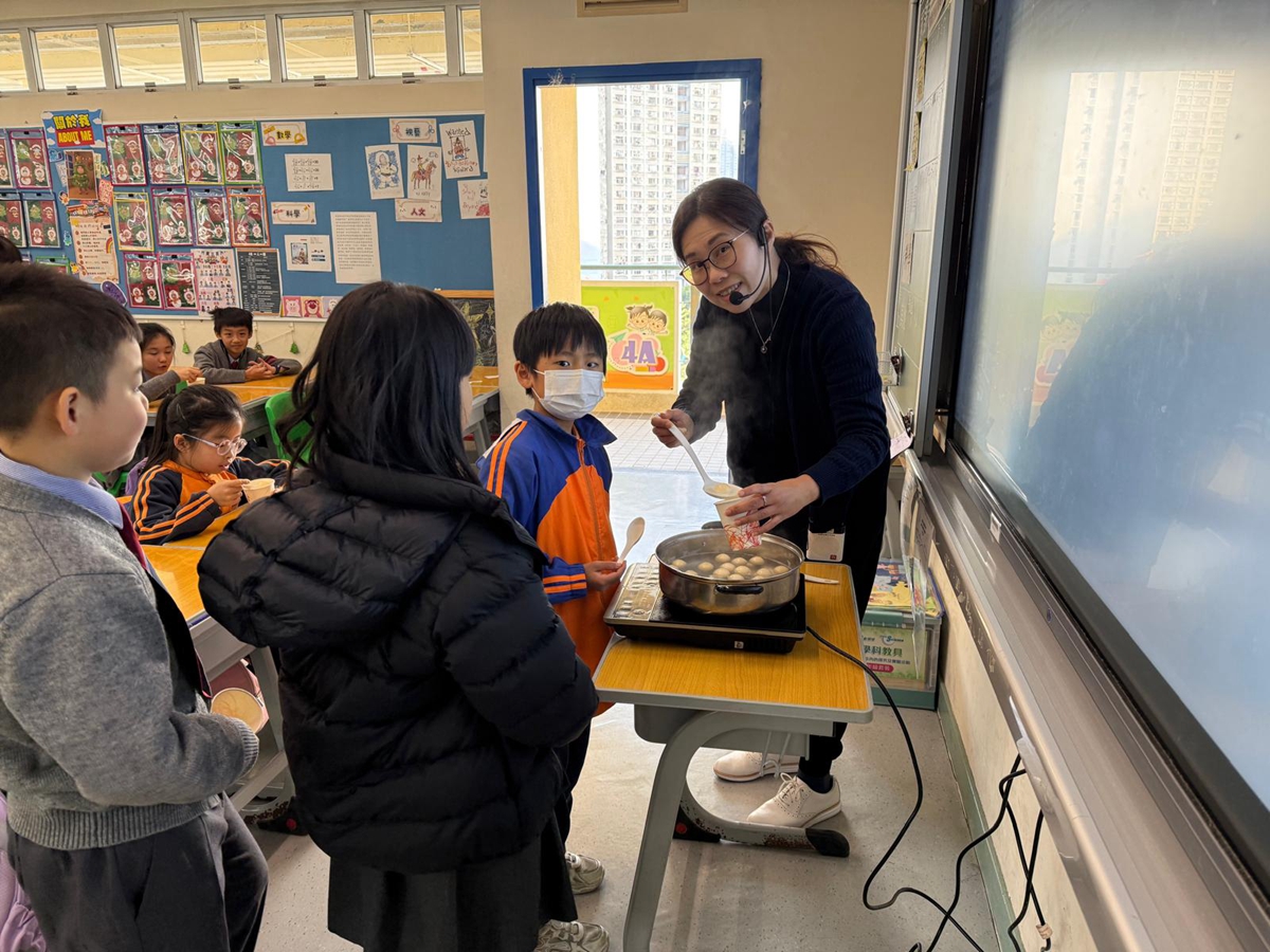 四年級學生於專題研習課認識中國傳統小吃—湯圓。他們不僅品嚐到軟糯香甜的湯丸,更從熱氣蒸騰中感受到團圓溫暖的中華魅力。