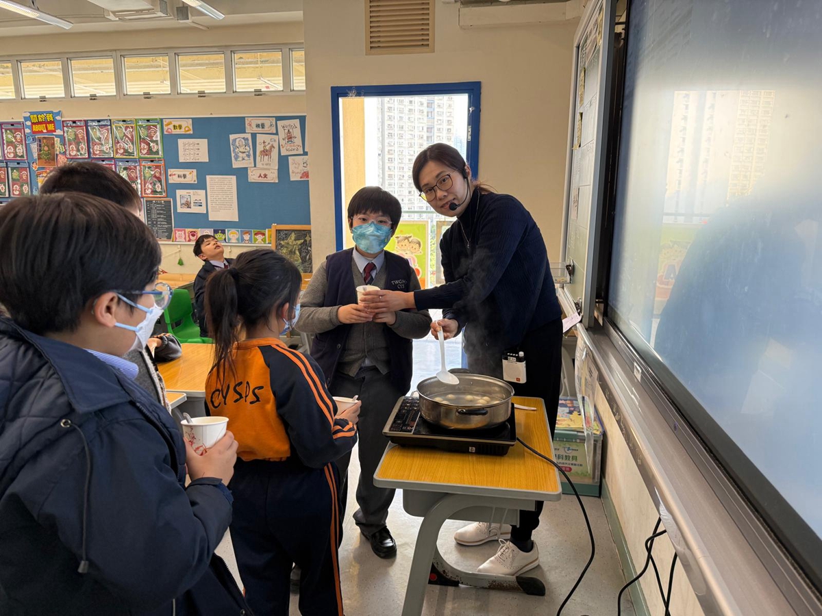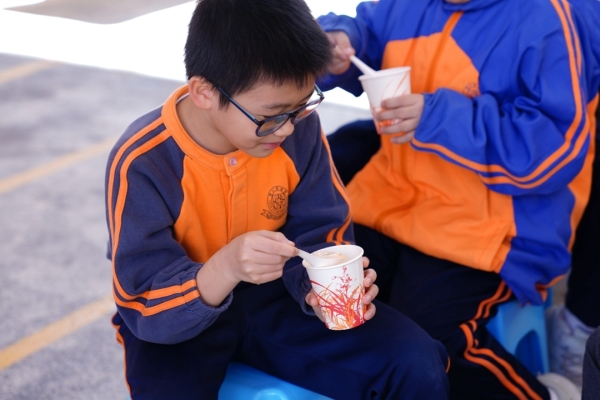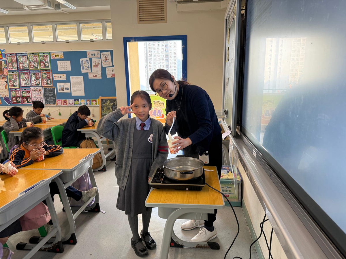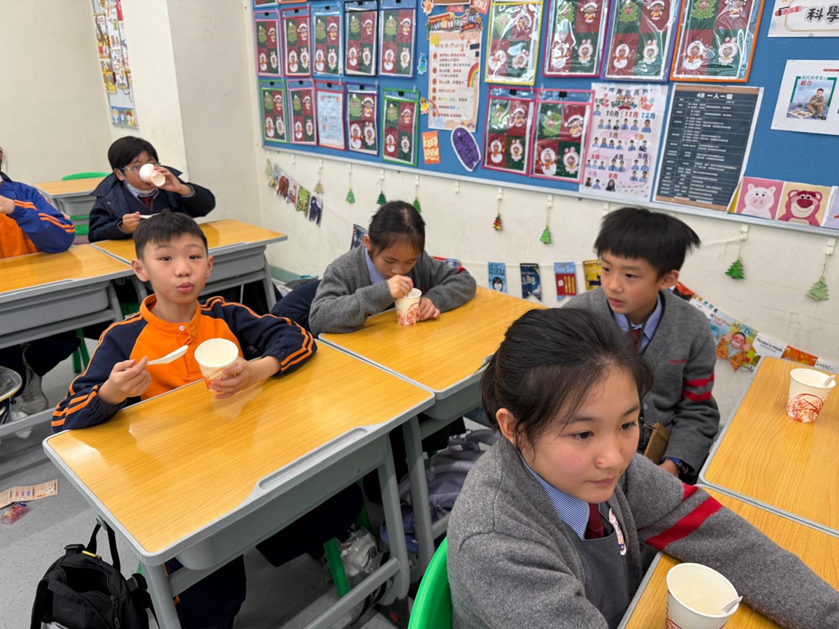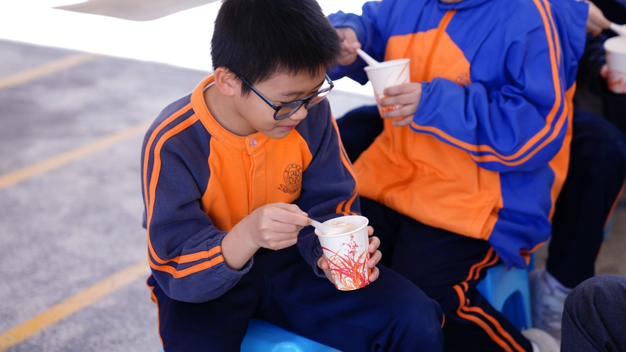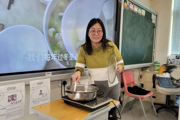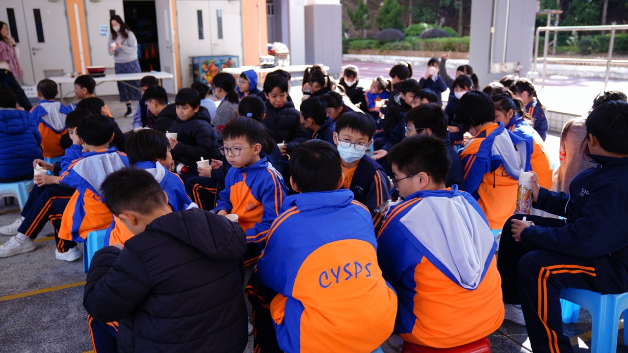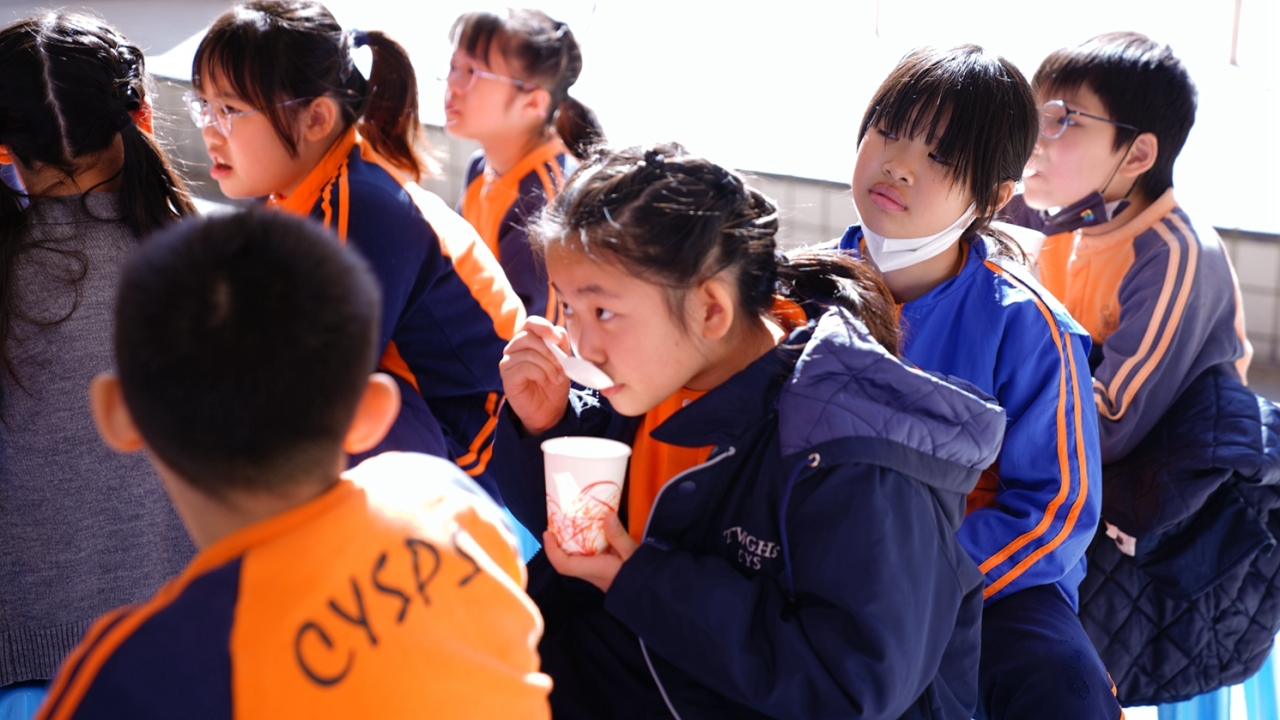 四年級學生於專題研習課認識中國傳統小吃—湯圓。他們不僅品嚐到軟糯香甜的湯丸,更從熱氣蒸騰中感受到團圓溫暖的中華魅力。