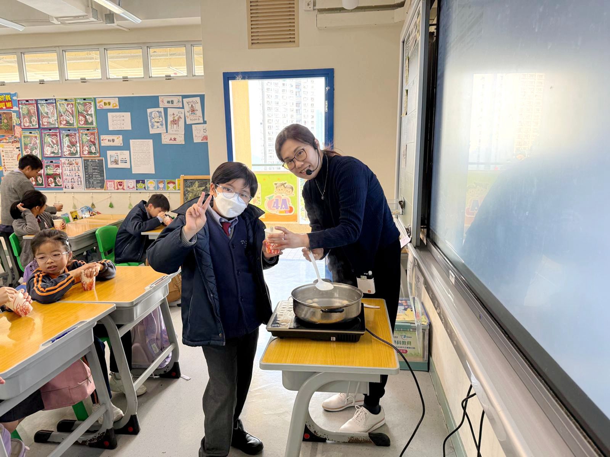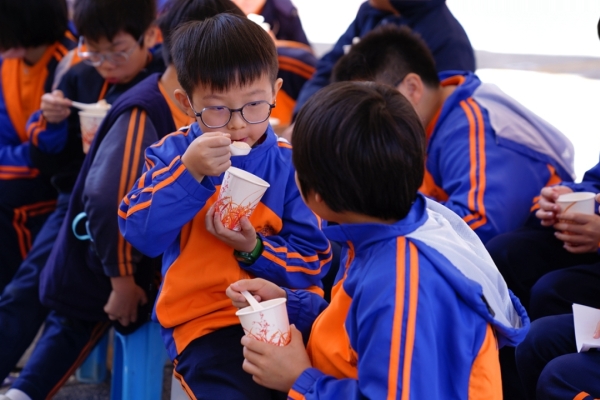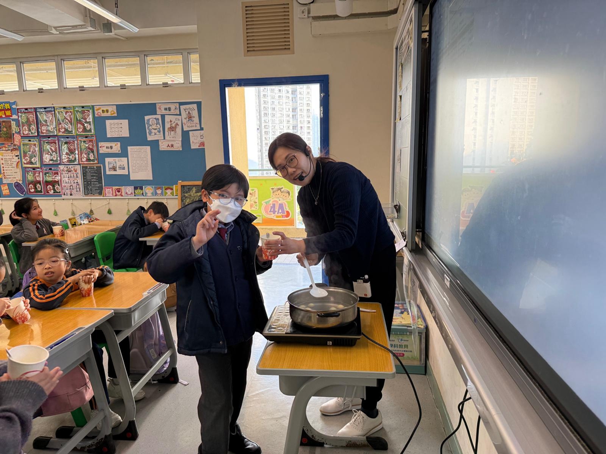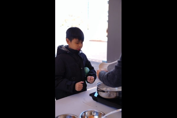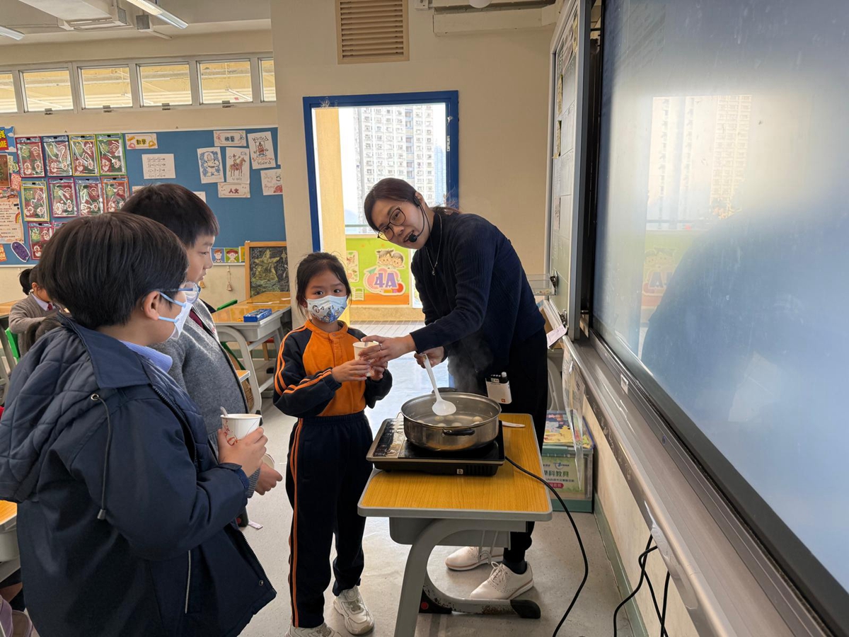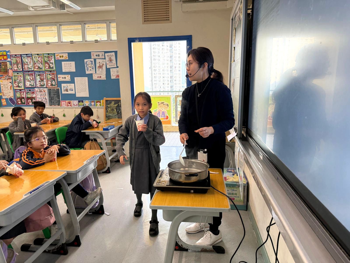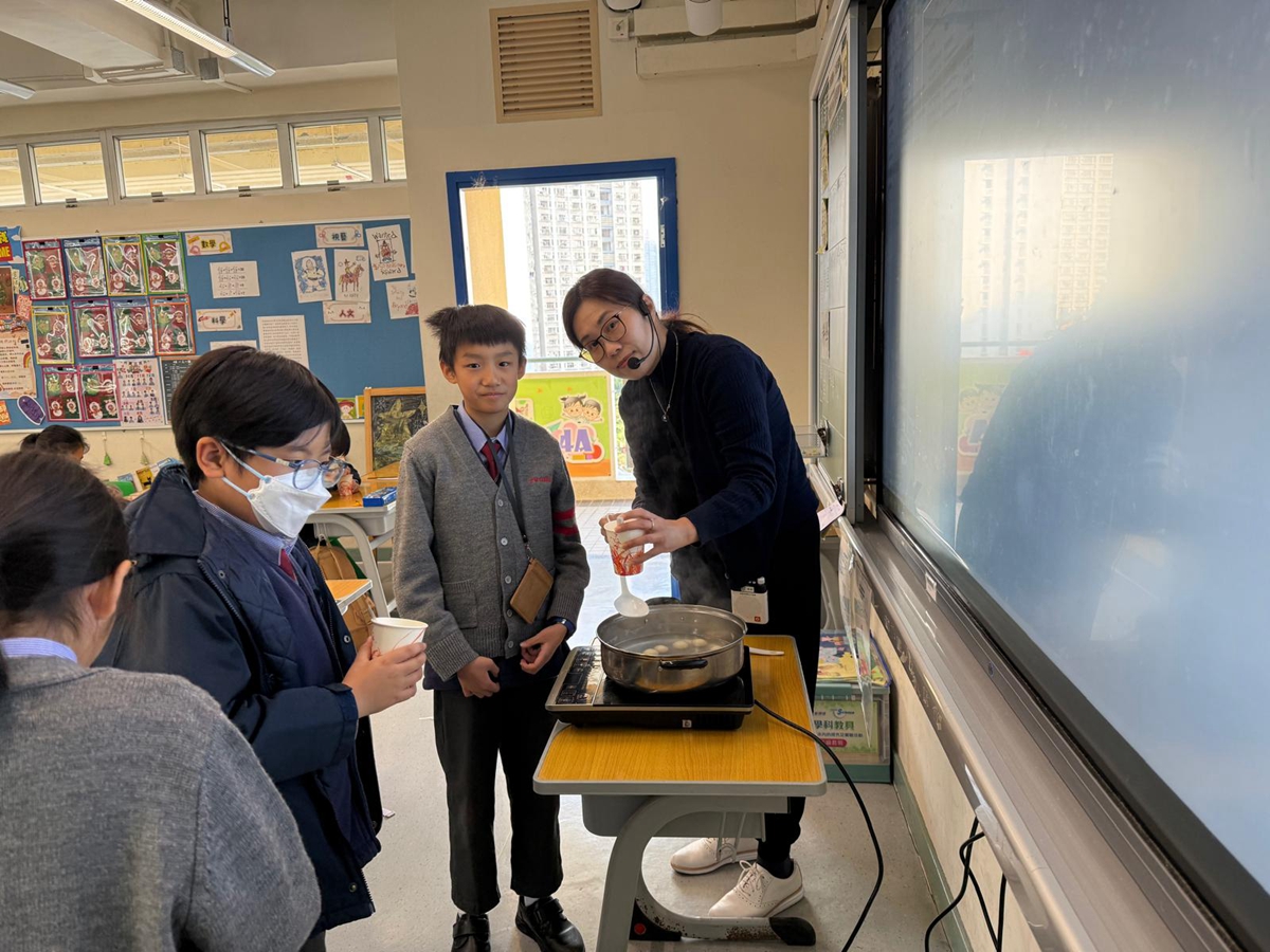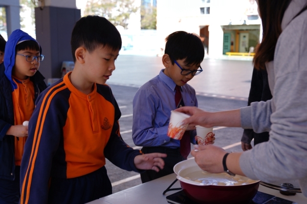 四年級學生於專題研習課認識中國傳統小吃—湯圓。他們不僅品嚐到軟糯香甜的湯丸,更從熱氣蒸騰中感受到團圓溫暖的中華魅力。