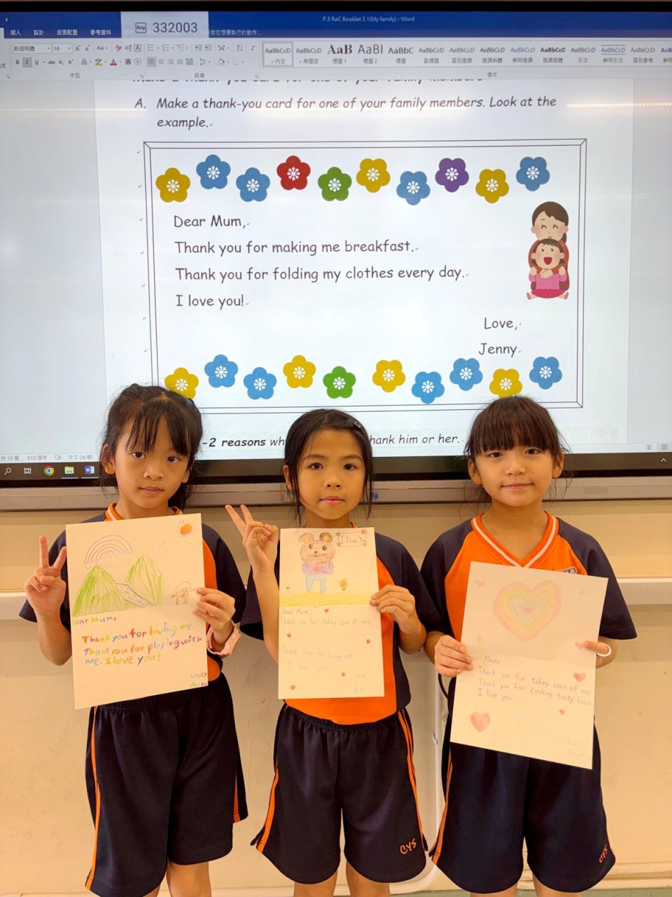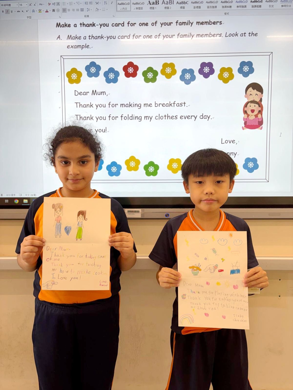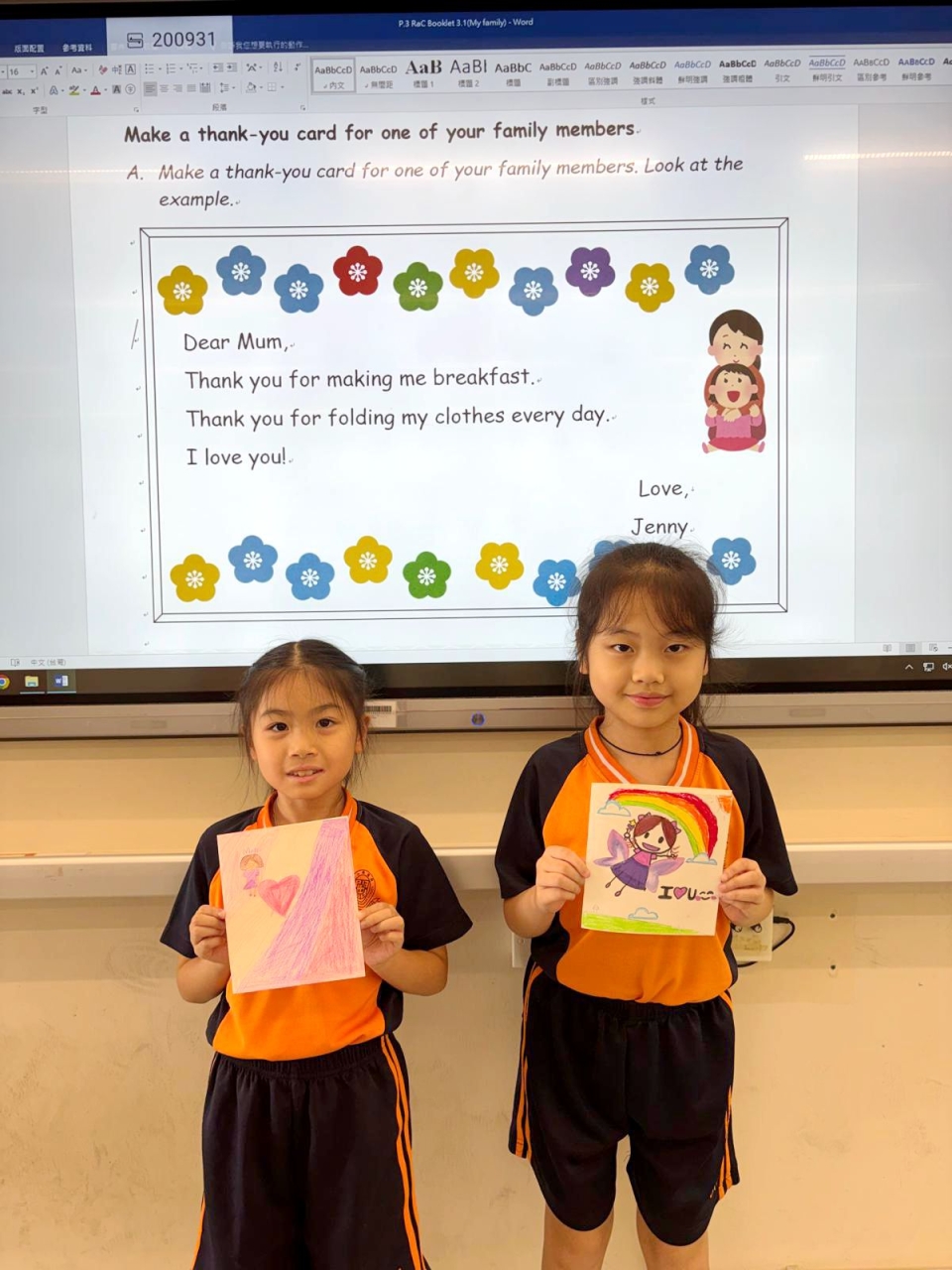 The theme of P3 Reading Across the Curriculum in semester 1 is ‘My Family.’ They read a book about grandparents. Then, they conducted an interview about what housework they can help with at home. Finally, they drew a thank-you card for one of their family members. The students were engaged in the activities and learned how to show love to their family members. They enjoyed the activities very much.