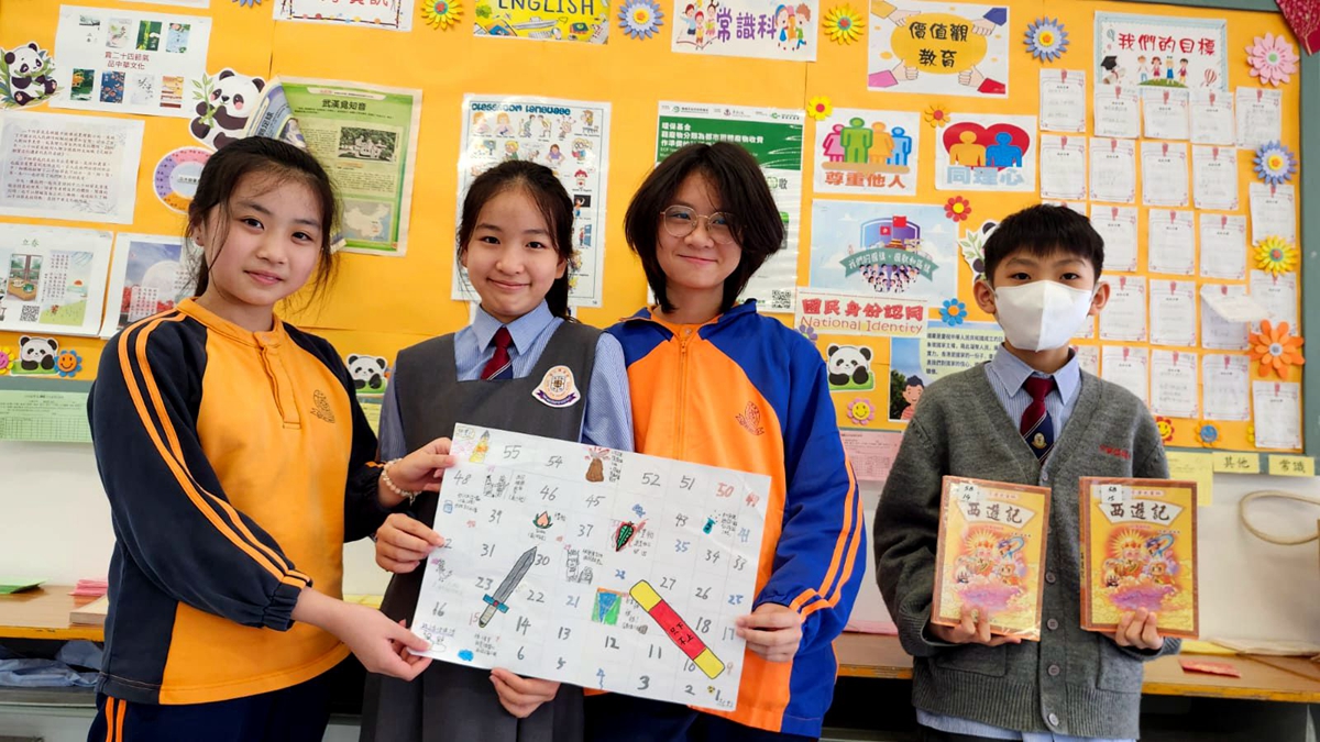 跨學科閱讀課是POWER-up 森動課程的重要組成部分,特別是在五年級的教材中,同學們閱讀了四大名著之一的《西遊記》。這本經典小說不僅豐富了學生的文化知識,還加深了他們對文學的欣賞能力。在課堂活動中,同學們積極參與製作棋盤,將所學的知識實踐出來。棋盤的製作過程不僅讓學生們了解了《西遊記》的故事情節和人物,更激發了他們的創造力。透過分工合作,同學們學會了如何有效地溝通與協作,從而培養了團隊合作的精神。