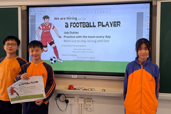 跨學科閱讀課是POWER-up 森動課程的内容之一,在六年級的跨學科閱讀課中,同學透過閱讀認識不同主題及提升他們的閱讀能力。在上學期中,同學探索了夢想職業,通過體驗活動,了解各行各業的職責與所需技能。此外,同學也探索了有關中國傳統價值觀的主題,通過閱讀故事及實踐活動,同學可以深入理解孝道、尊重和誠信等重要價值,並透過反思和分享,加強了自身的國文身份認同。